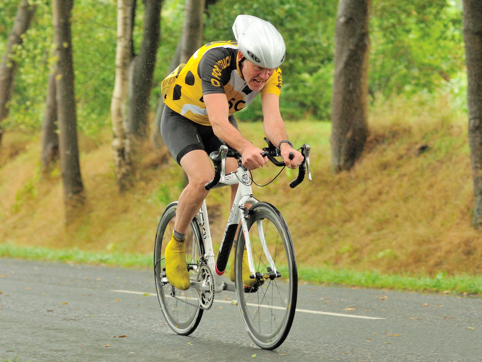 Das Einzelzeitfahren in Goldenstedt war diesmal auch die Bezirksmeisterschaft im Zeitfahren. Das schöne Spätsommerwetter hatte leider genau zum Wochenende umgeschlagen. Vorhergesagt war regnerisches Wetter mit örtlichem Unwetterpotential. Von den 219 gemeldeten Zeitfahrern waren aber immerhin noch 141 am Start. Zu Rennbeginn um 9 Uhr waren die äußeren Bedingungen ideal zum Zeitfahren. Die Straßen waren zwar nass, aber die Temperaturen waren mild und es herrschte absolute Windstille. Ab und zu gab es ganz leichten Regen, eher nur feuchte Luft. Allerdings kam kurz nach 11 Uhr während des Rennens der Senioren 2 und zum Start der Elite Wind auf. Schnell wurde es ein kleines Unwetter mit regnerischen Sturmböen und empfindlicher Kälte. Die Elitefahrer ließen sich aber nicht wirklich aus dem Konzept bringen. Was bei den Scheibenrädern doch verwunderlich war. Trotz einiger gefährlich aussehender Schlenker blieben alle auf der Straße. Die gefahrenen Durchschnittsgeschwindigkeiten der besten Fahrer waren mit 44 bis 46,5 km/h trotzdem sehr hoch.