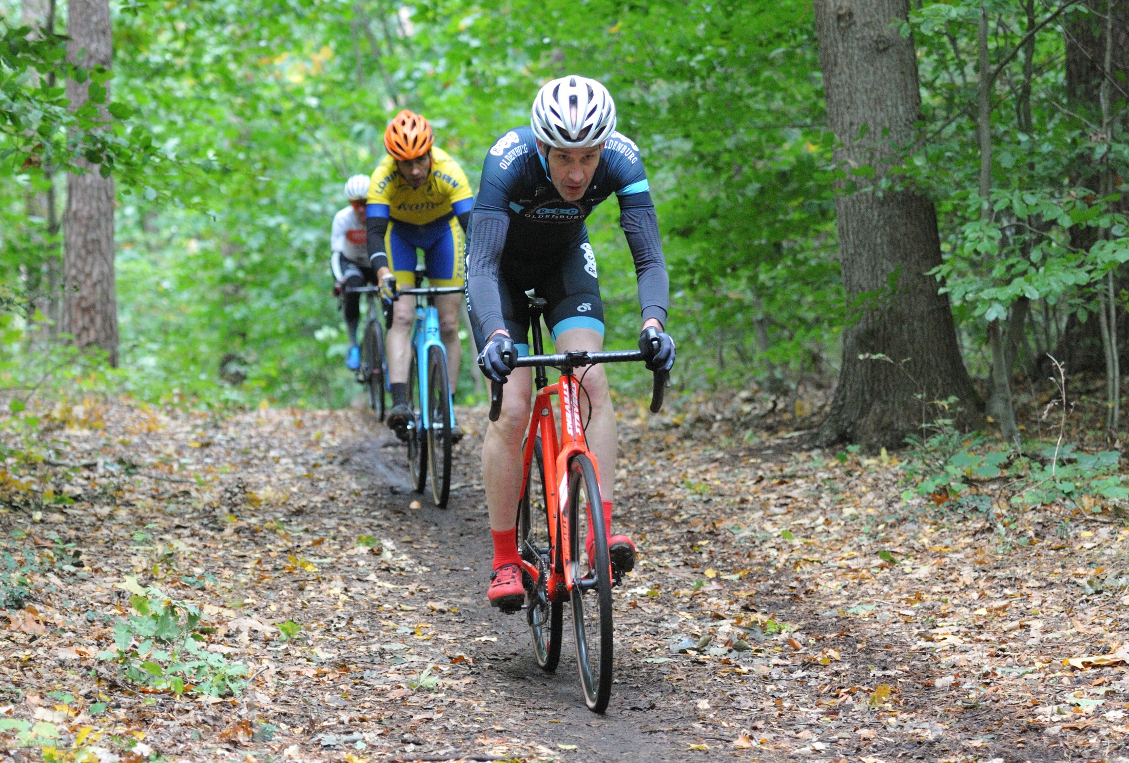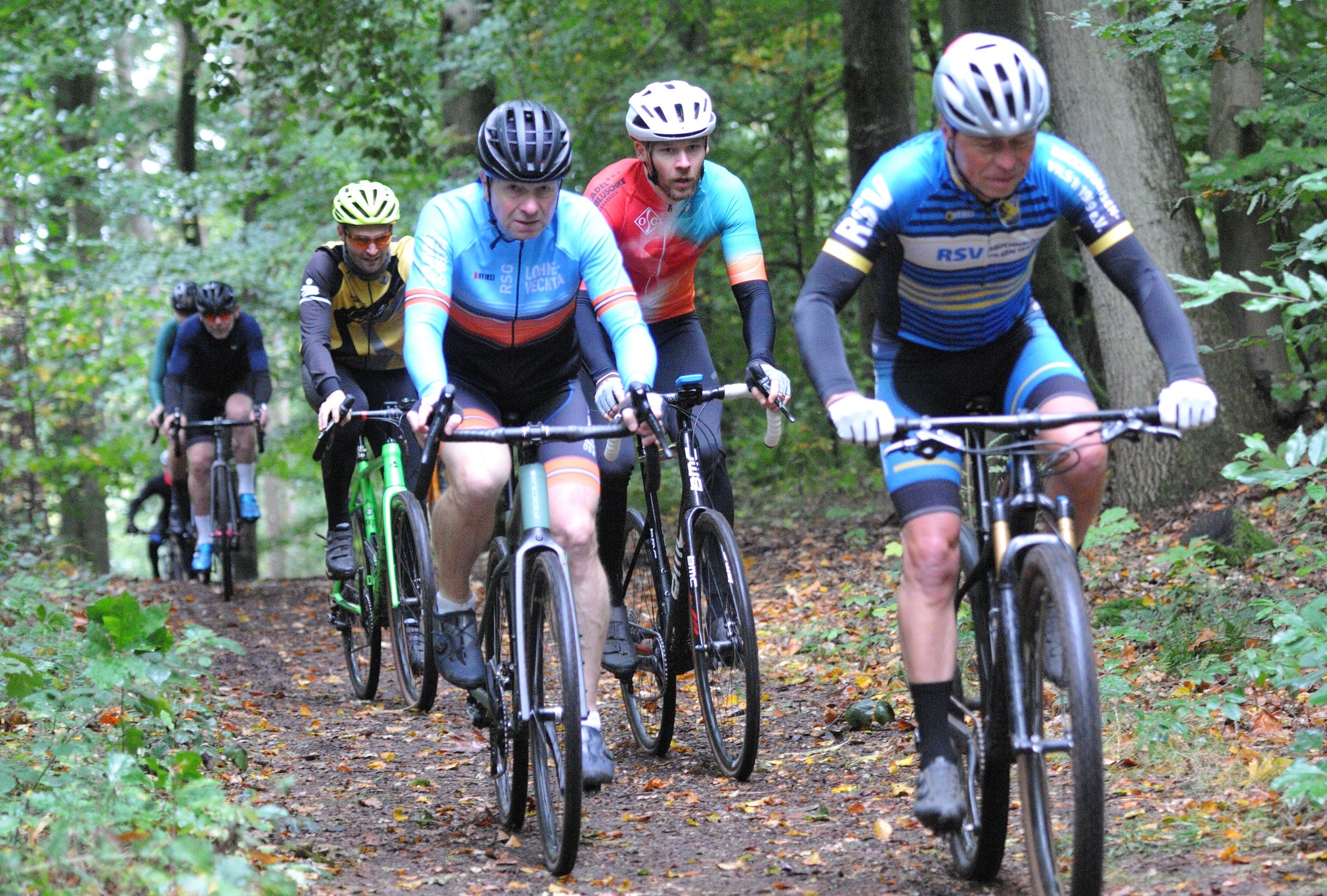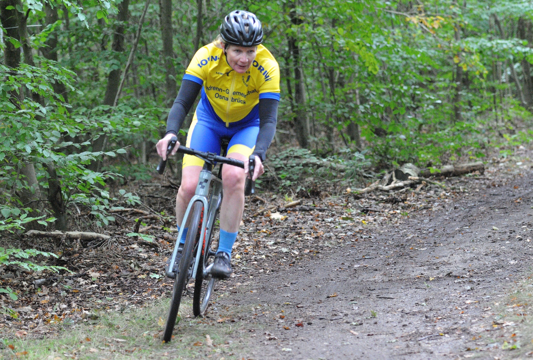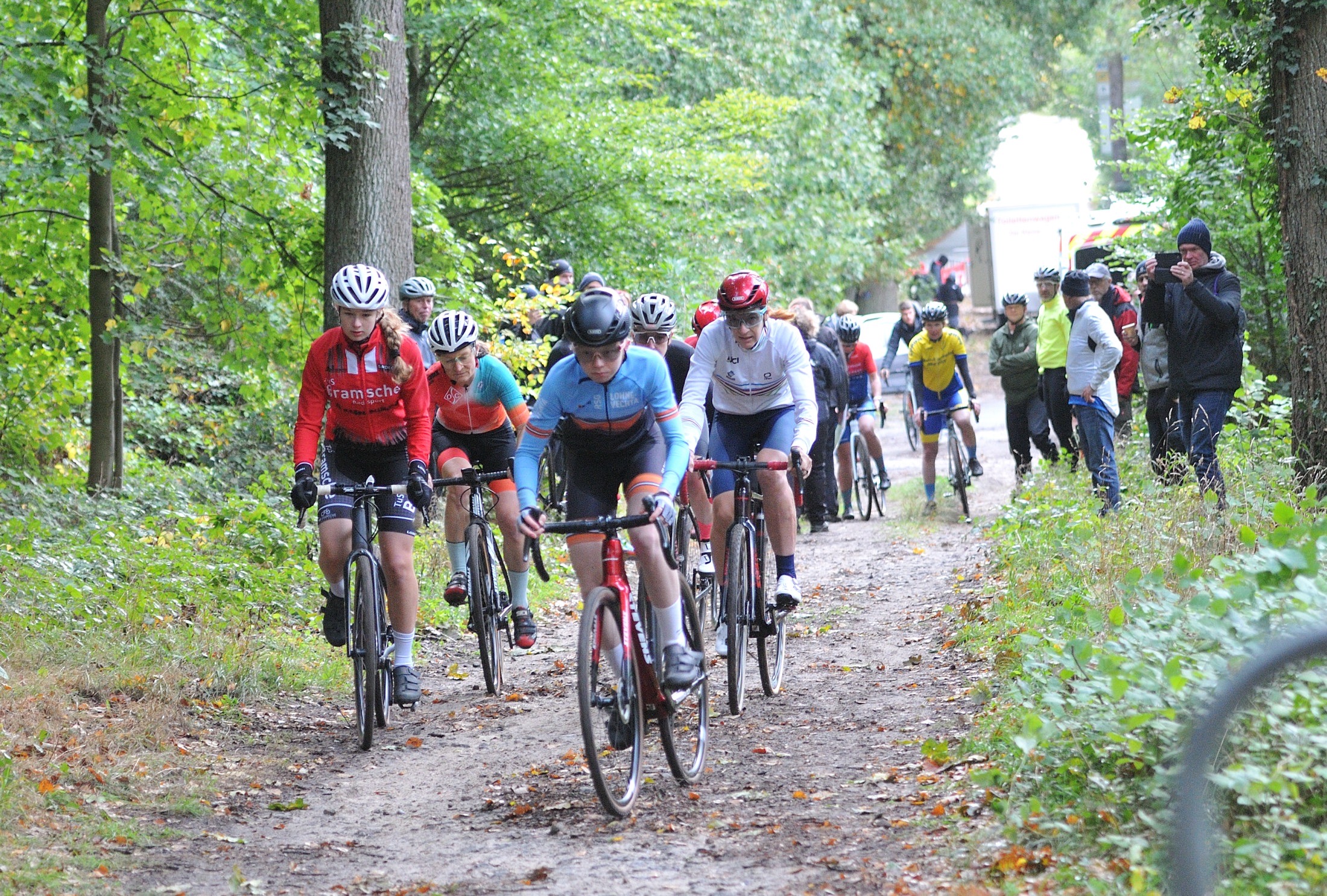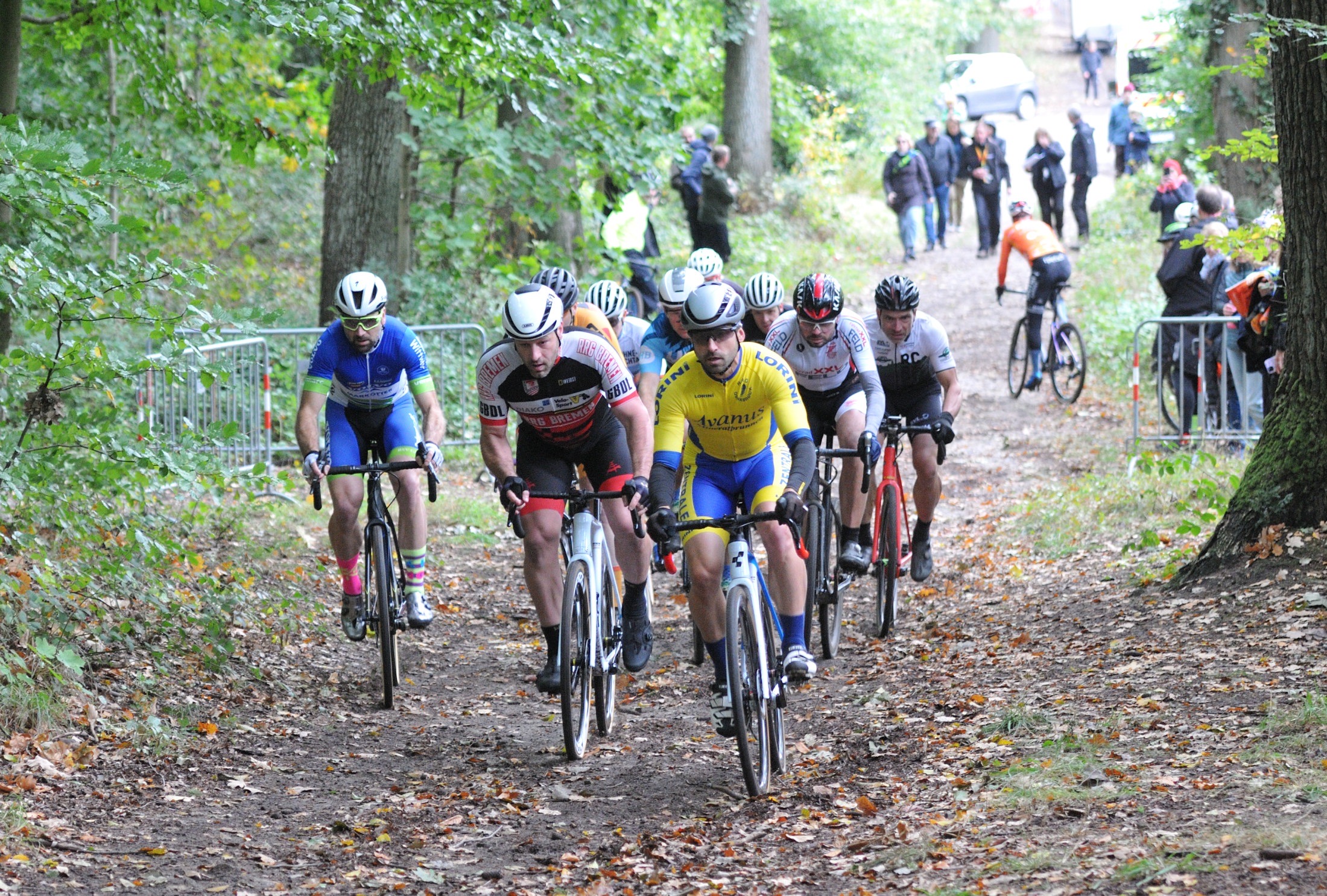 Das erste Crossrennen der RRG in dieser Saison fand wieder im Waldgebiet der Bornheide statt. Hier geht es viel rauf und runter. Man braucht also ordentlich Kraft und auch Steuerkunst. Der Starkregen am Vortag hat dem Waldboden kaum zugesetzt, so dass alle Wege gut fahrbar waren. Glücklicherweise blieb es während der gesamten Veranstaltung regenfrei.