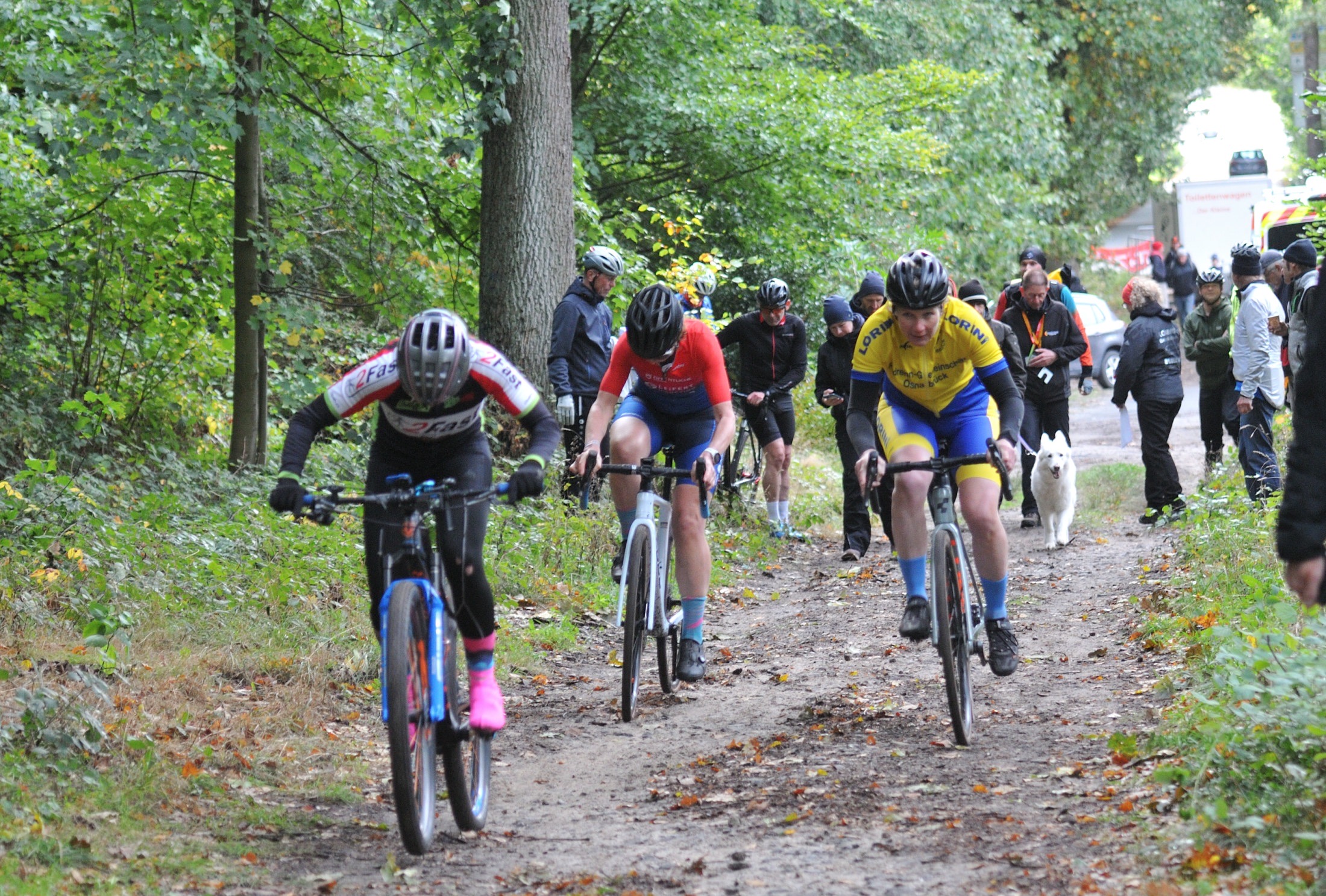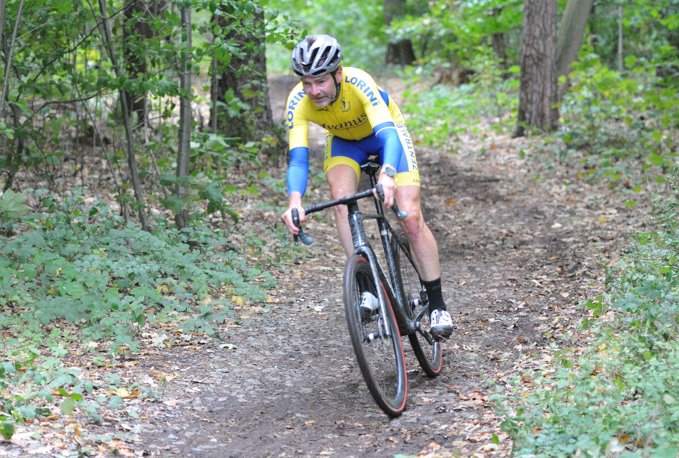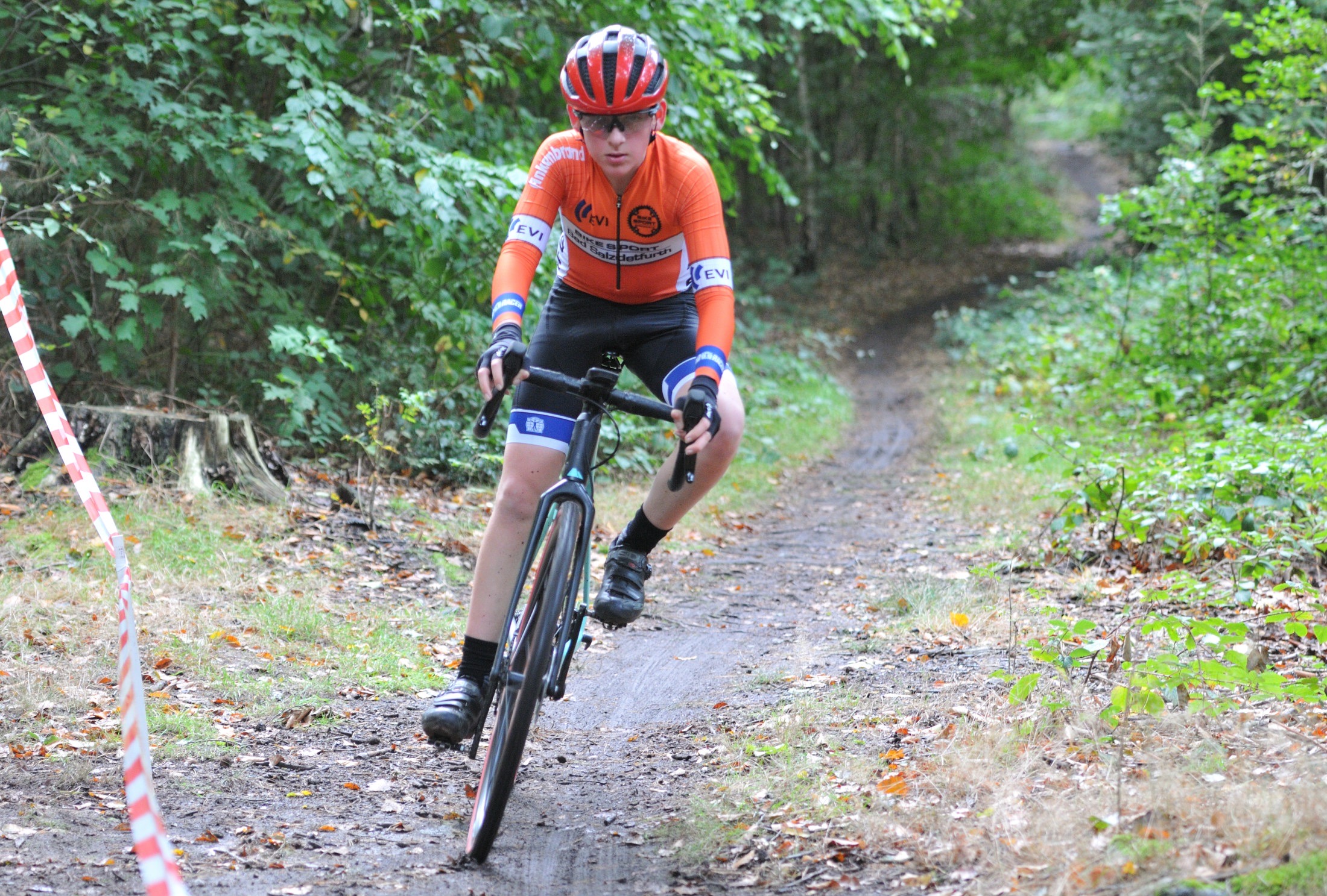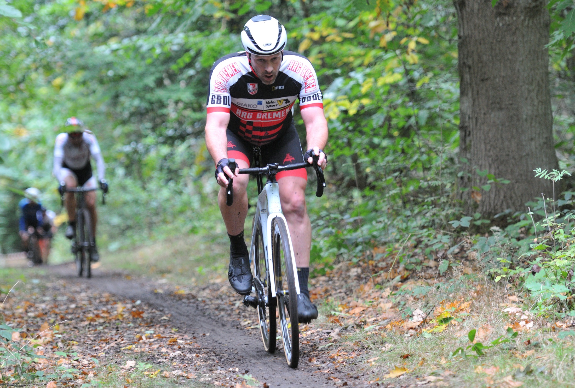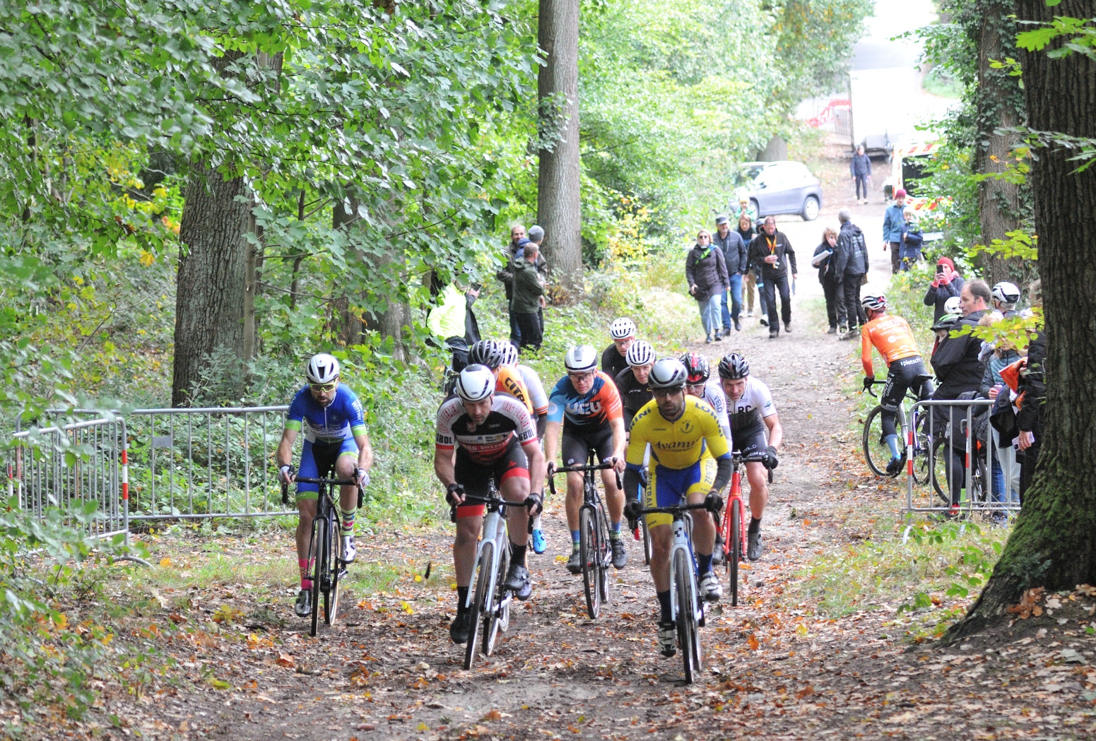 Das erste Crossrennen der RRG in dieser Saison fand wieder im Waldgebiet der Bornheide statt. Hier geht es viel rauf und runter. Man braucht also ordentlich Kraft und auch Steuerkunst. Der Starkregen am Vortag hat dem Waldboden kaum zugesetzt, so dass alle Wege gut fahrbar waren. Glücklicherweise blieb es während der gesamten Veranstaltung regenfrei.
