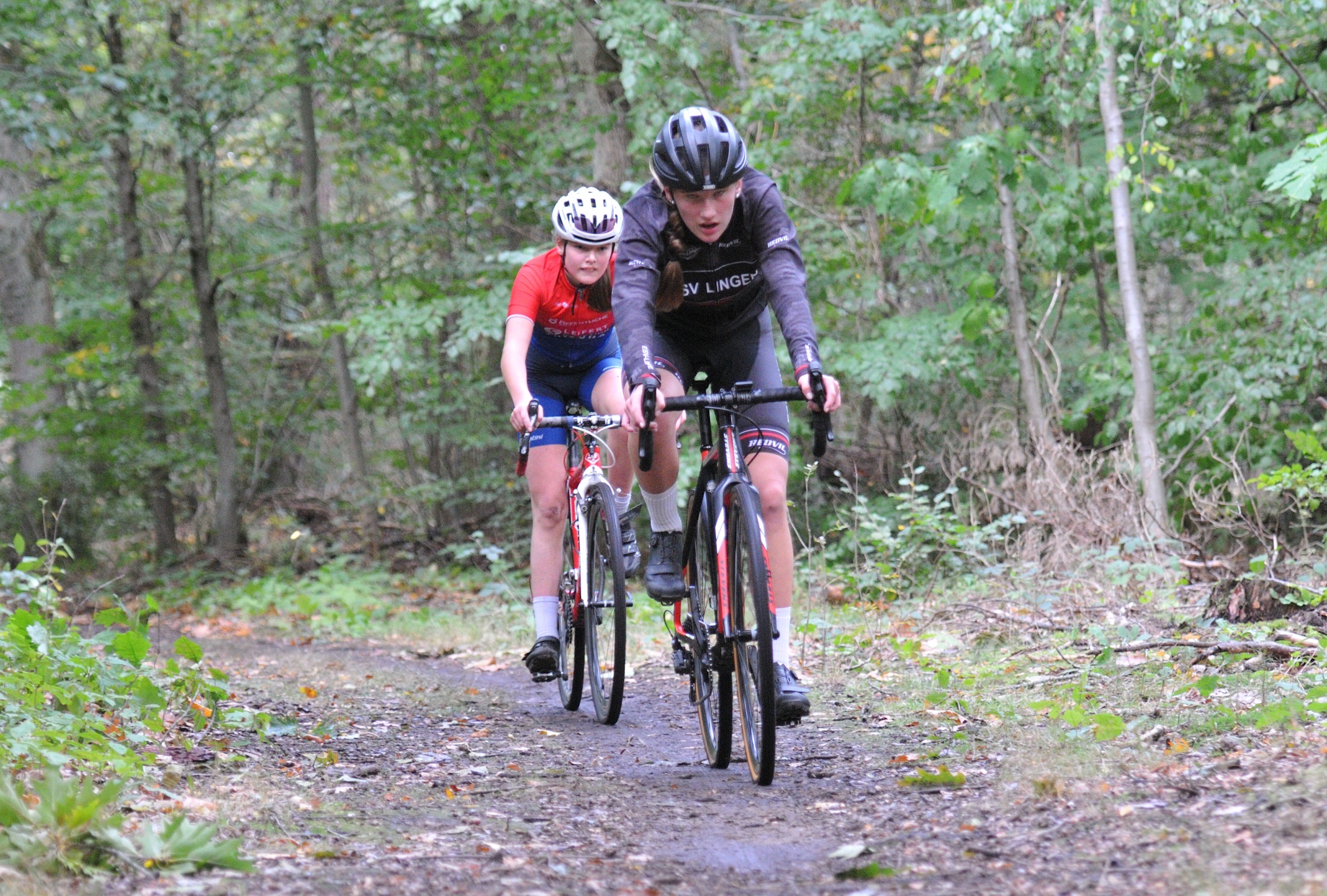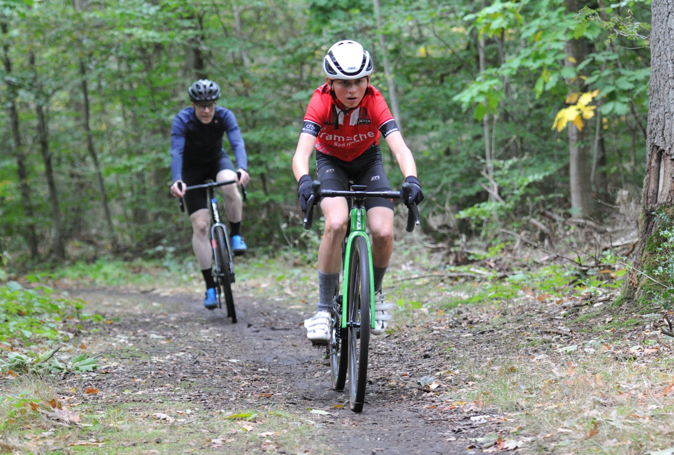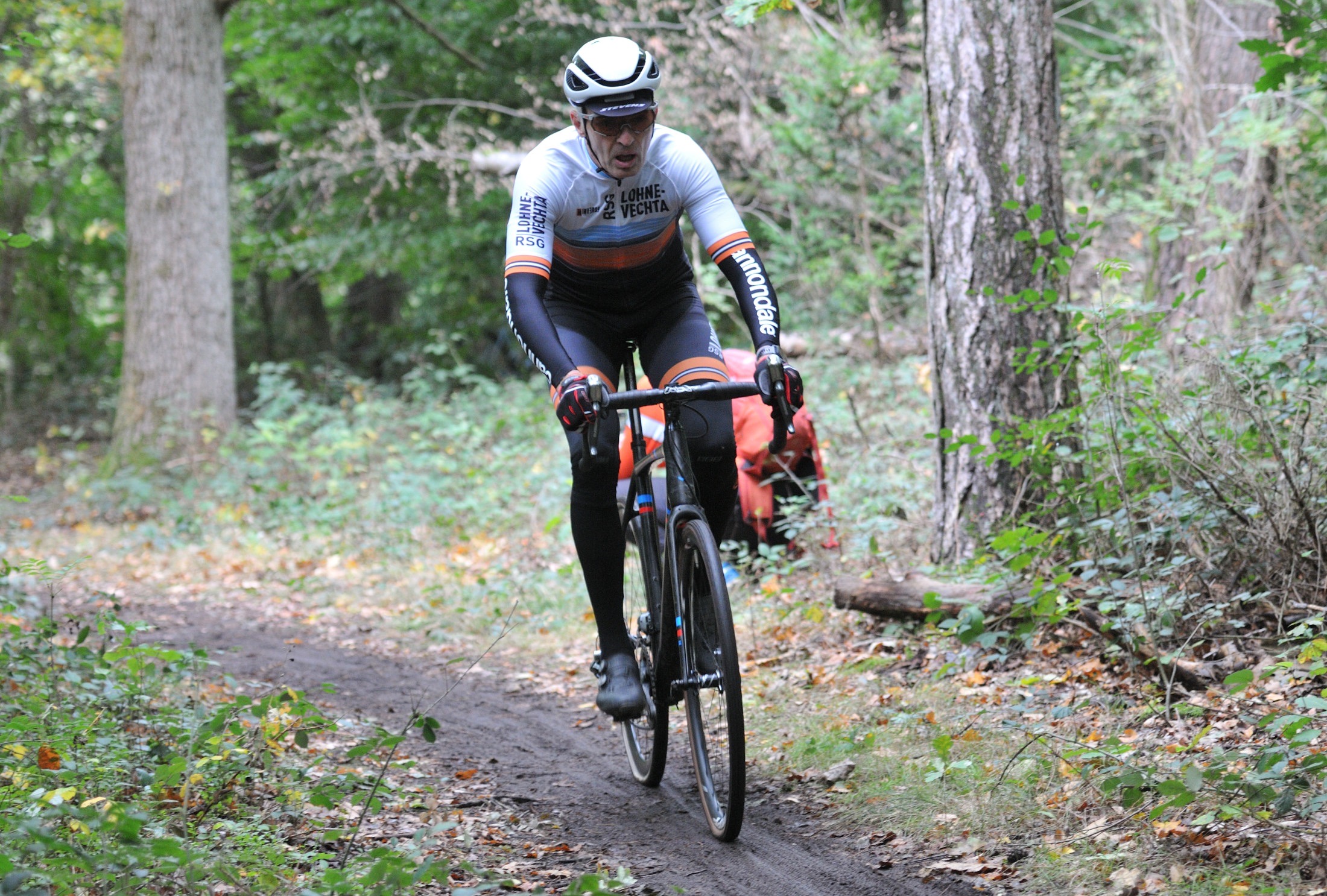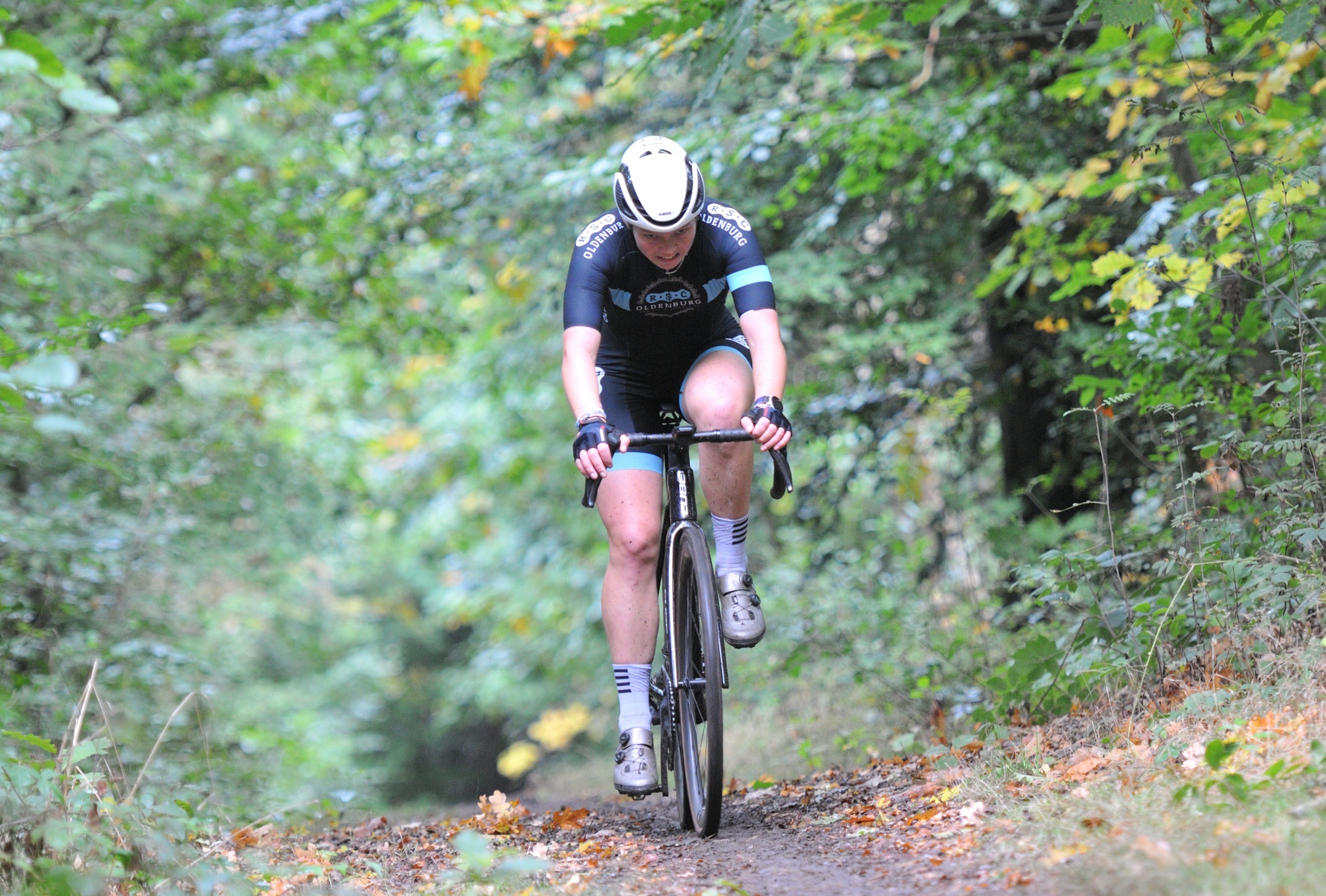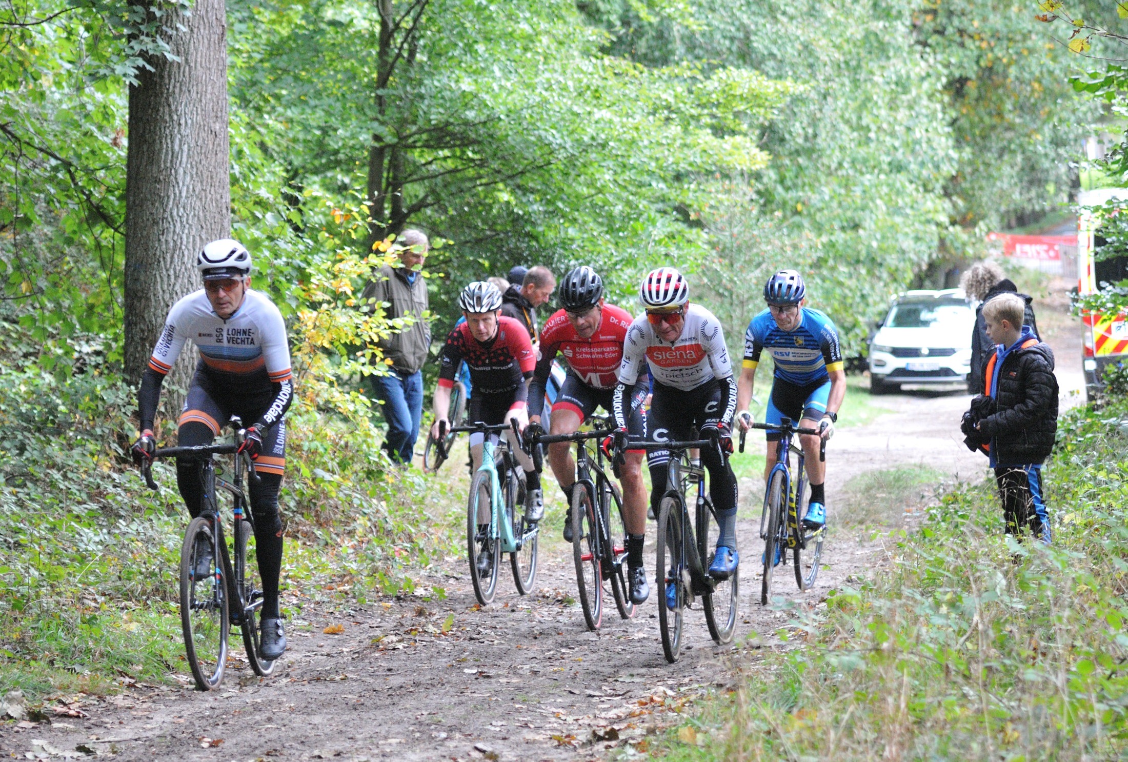Das erste Crossrennen der RRG in dieser Saison fand wieder im Waldgebiet der Bornheide statt. Hier geht es viel rauf und runter. Man braucht also ordentlich Kraft und auch Steuerkunst. Der Starkregen am Vortag hat dem Waldboden kaum zugesetzt, so dass alle Wege gut fahrbar waren. Glücklicherweise blieb es während der gesamten Veranstaltung regenfrei.