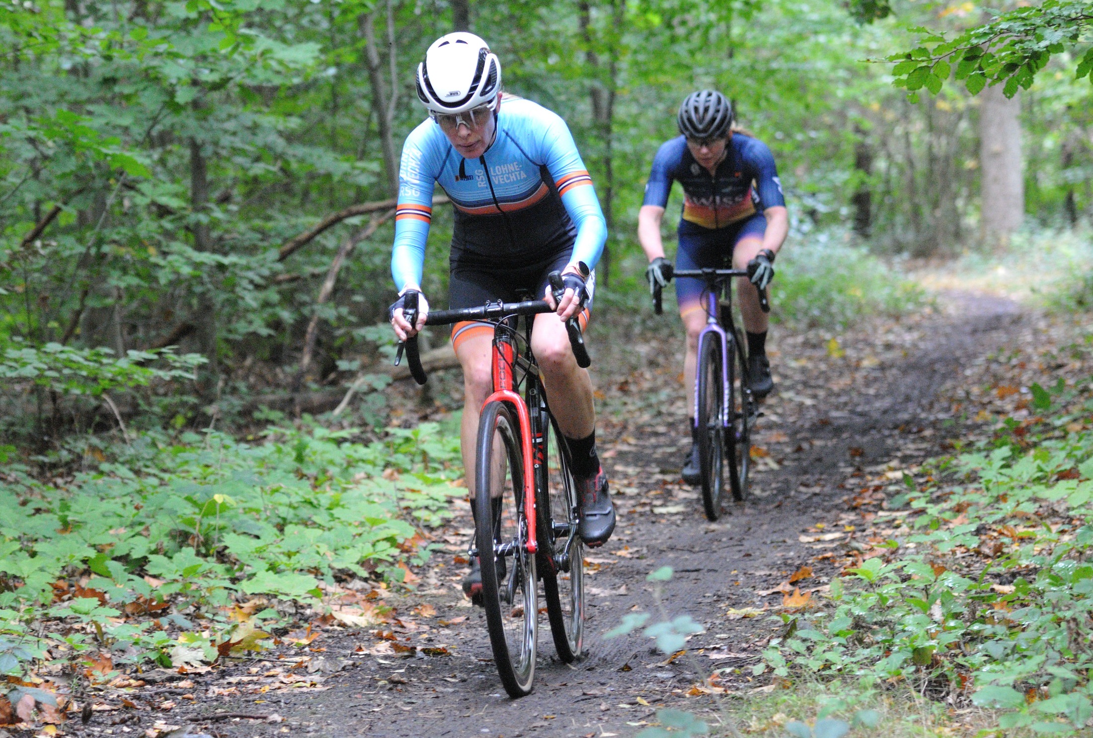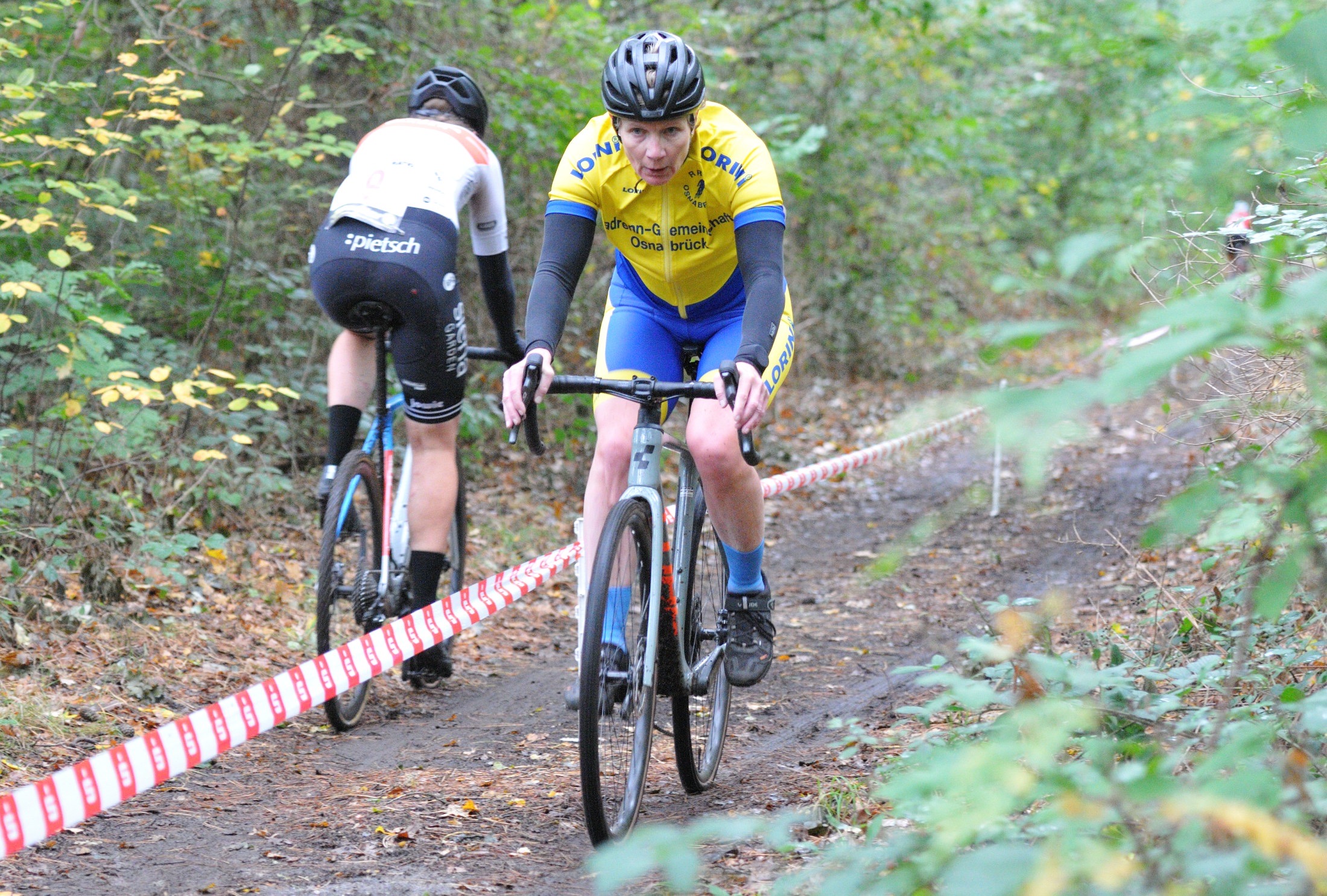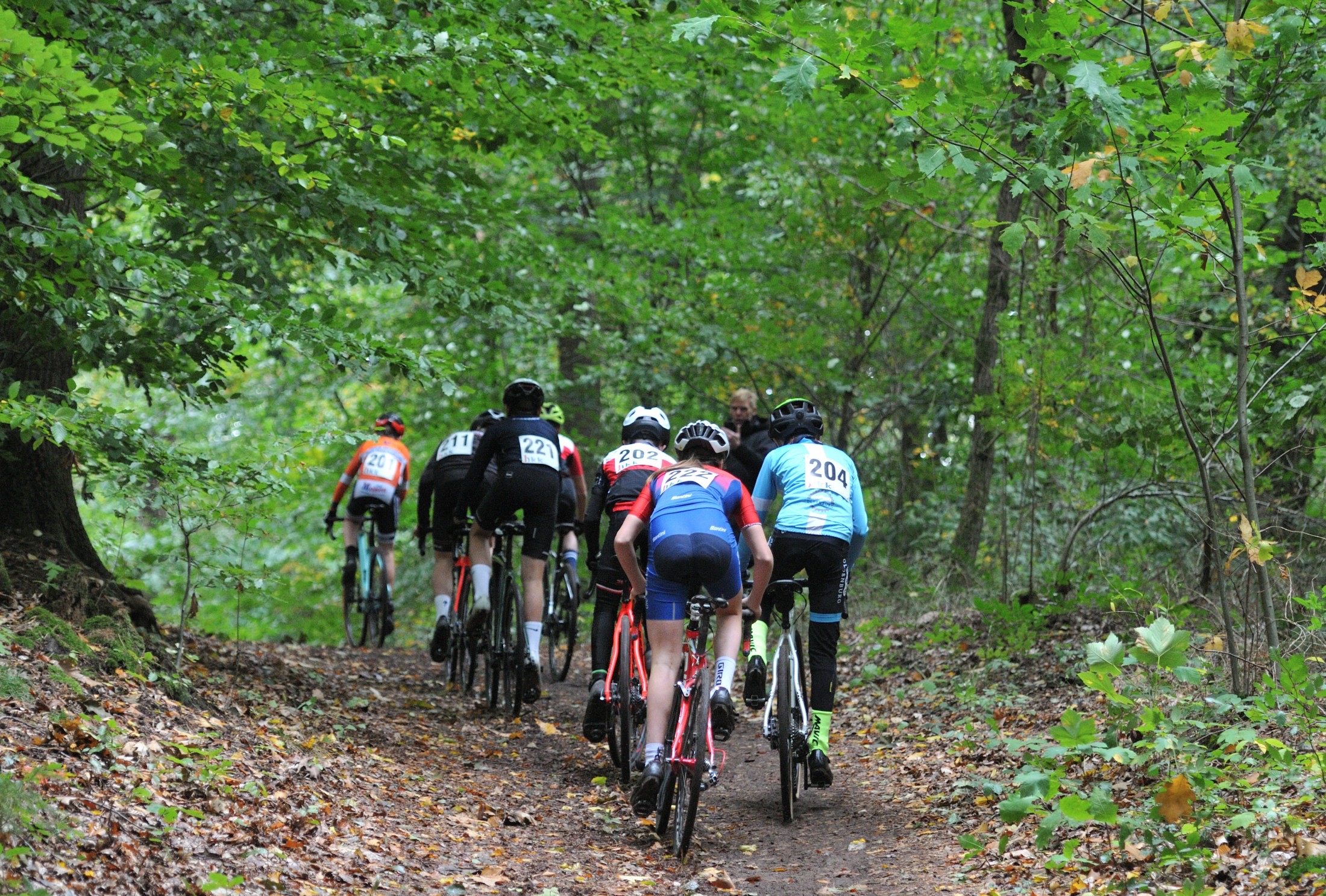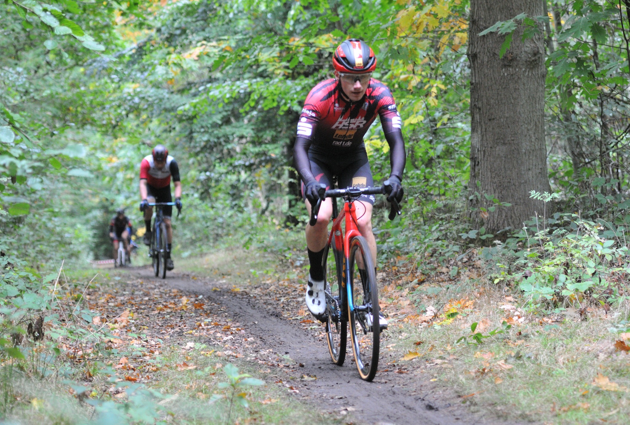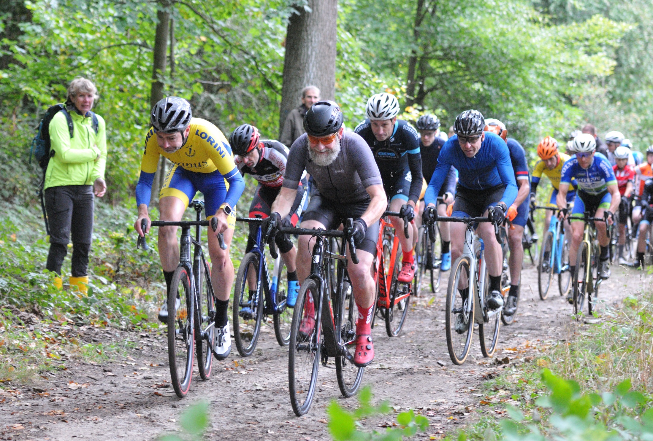 Das erste Crossrennen der RRG in dieser Saison fand wieder im Waldgebiet der Bornheide statt. Hier geht es viel rauf und runter. Man braucht also ordentlich Kraft und auch Steuerkunst. Der Starkregen am Vortag hat dem Waldboden kaum zugesetzt, so dass alle Wege gut fahrbar waren. Glücklicherweise blieb es während der gesamten Veranstaltung regenfrei.