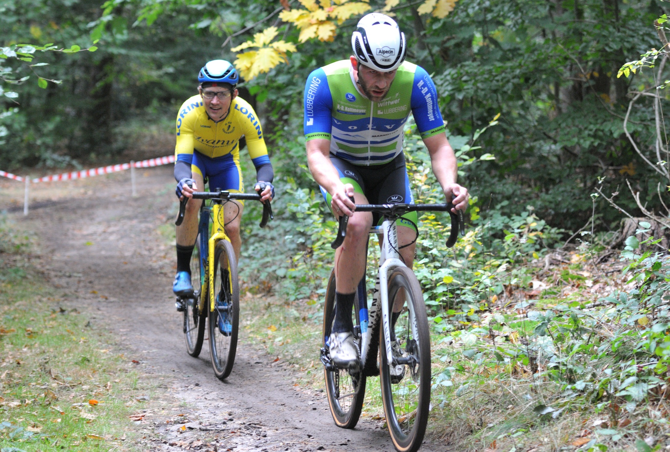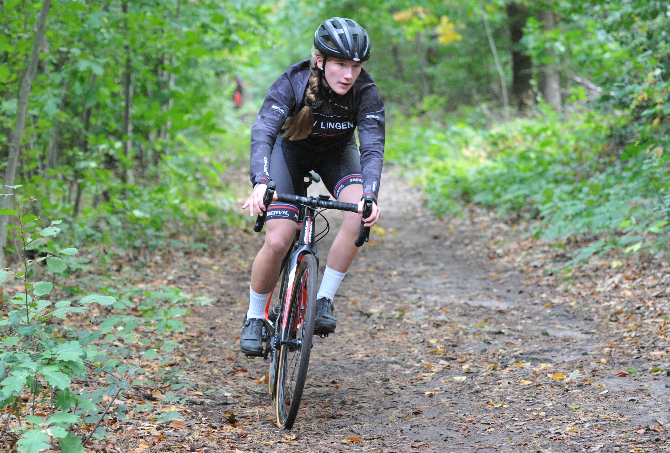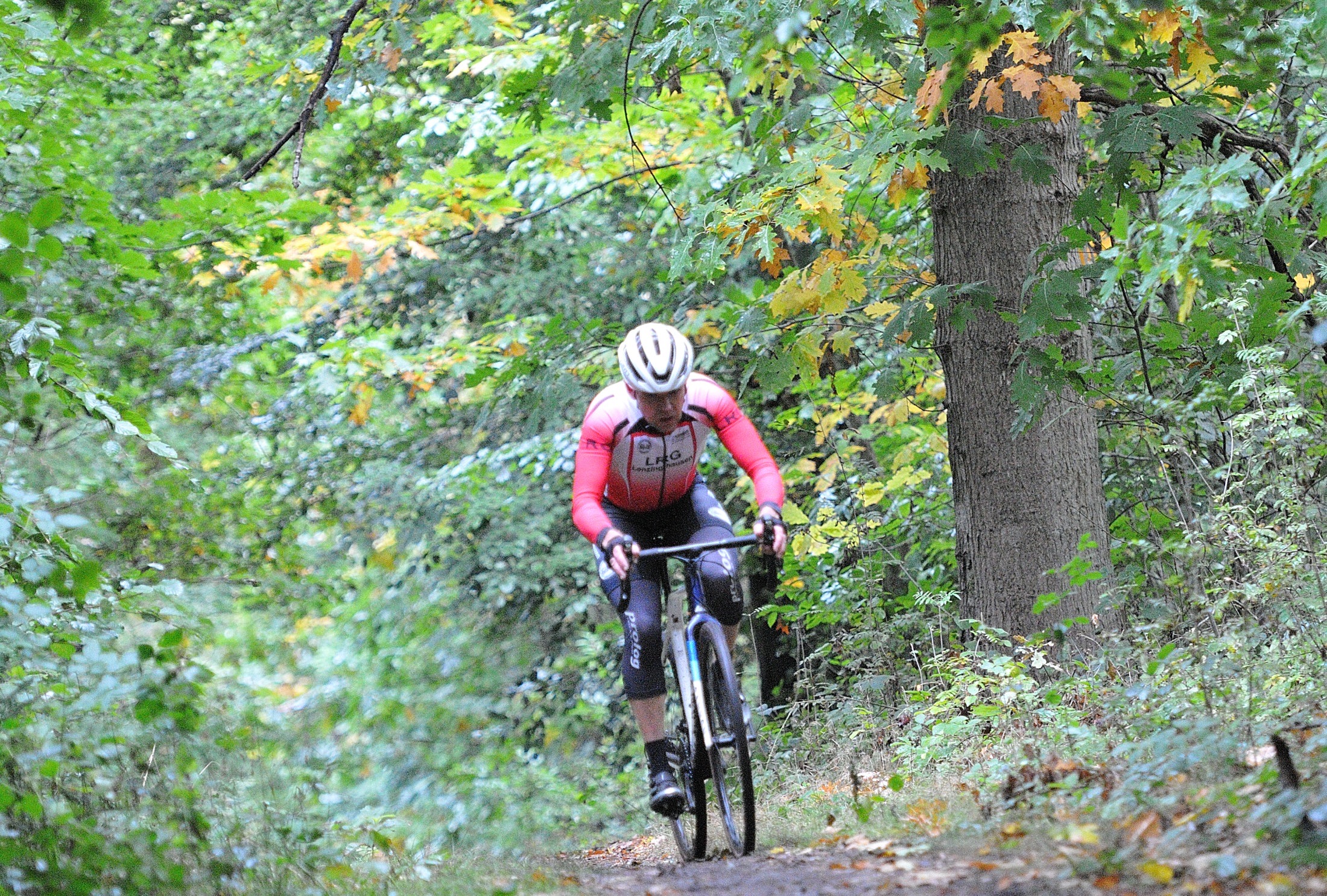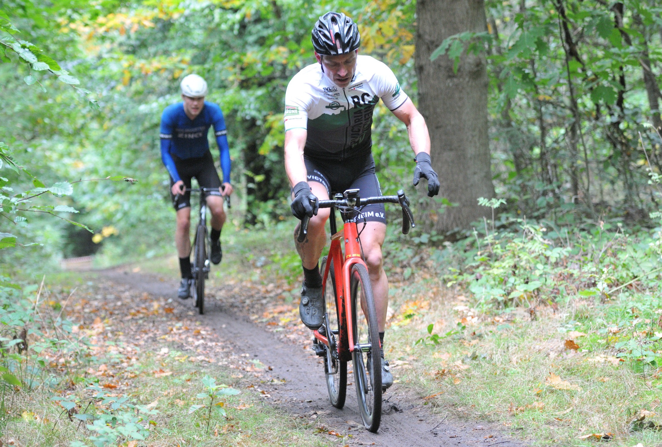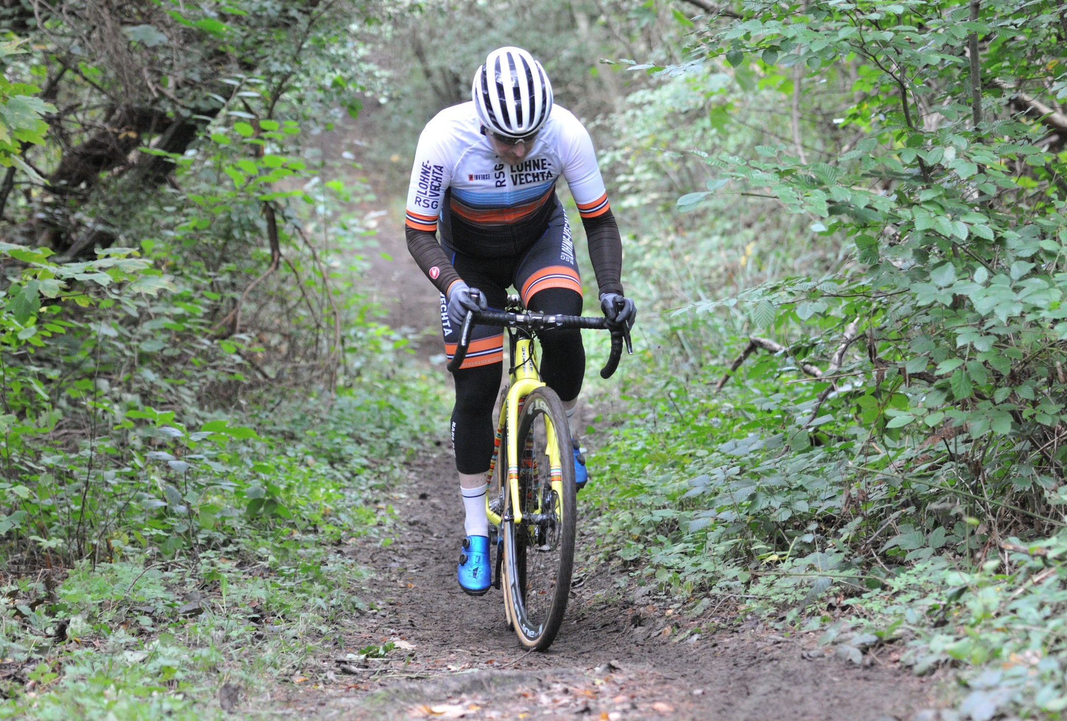 Das erste Crossrennen der RRG in dieser Saison fand wieder im Waldgebiet der Bornheide statt. Hier geht es viel rauf und runter. Man braucht also ordentlich Kraft und auch Steuerkunst. Der Starkregen am Vortag hat dem Waldboden kaum zugesetzt, so dass alle Wege gut fahrbar waren. Glücklicherweise blieb es während der gesamten Veranstaltung regenfrei.