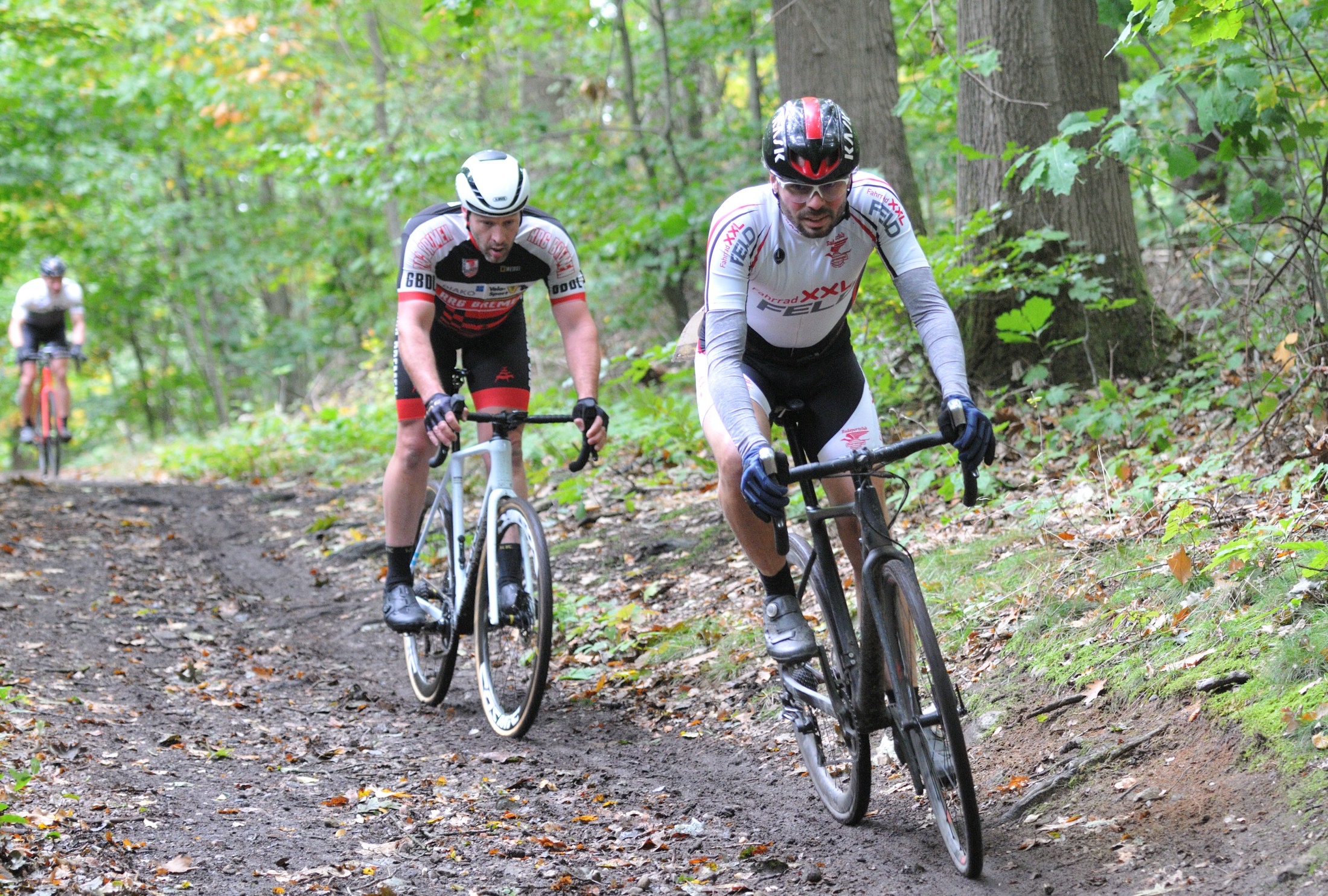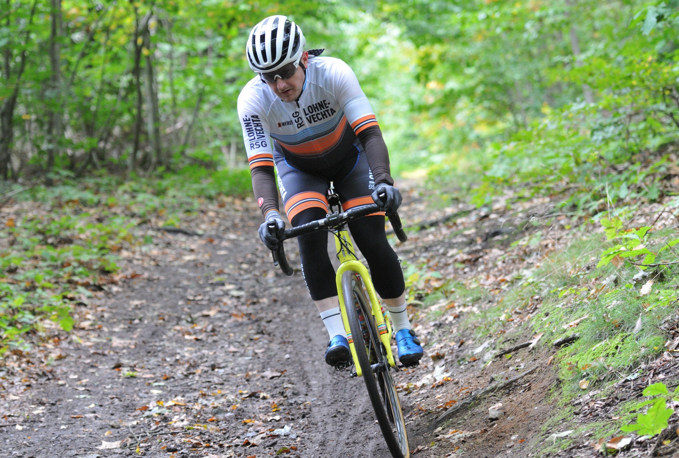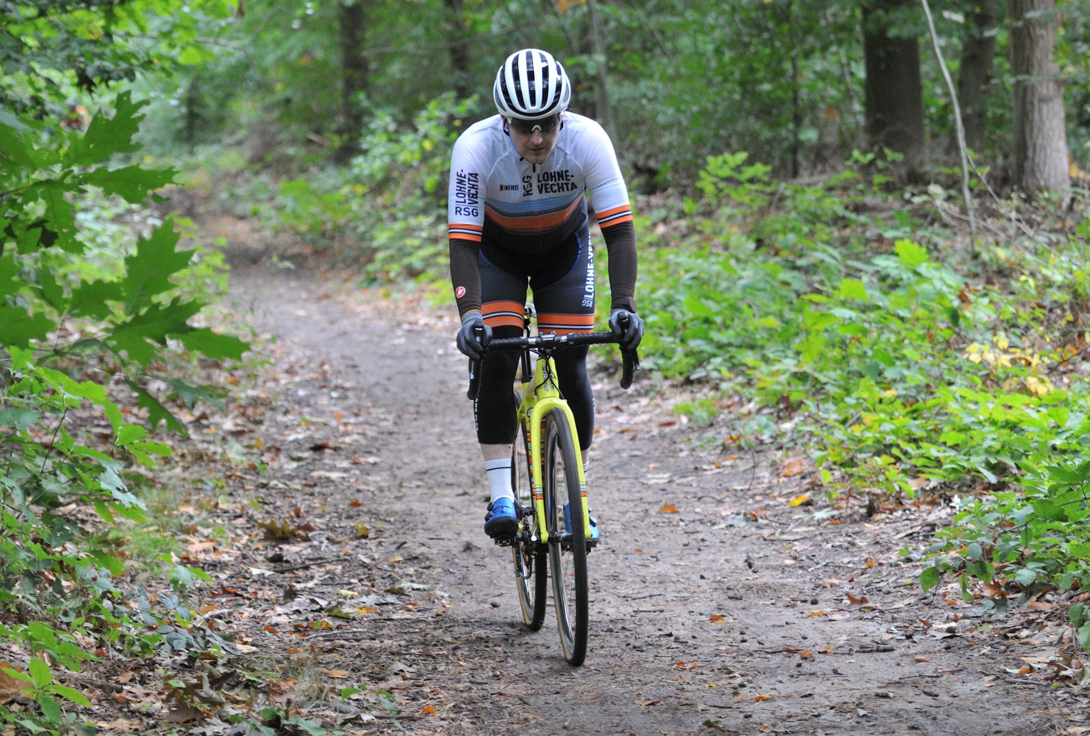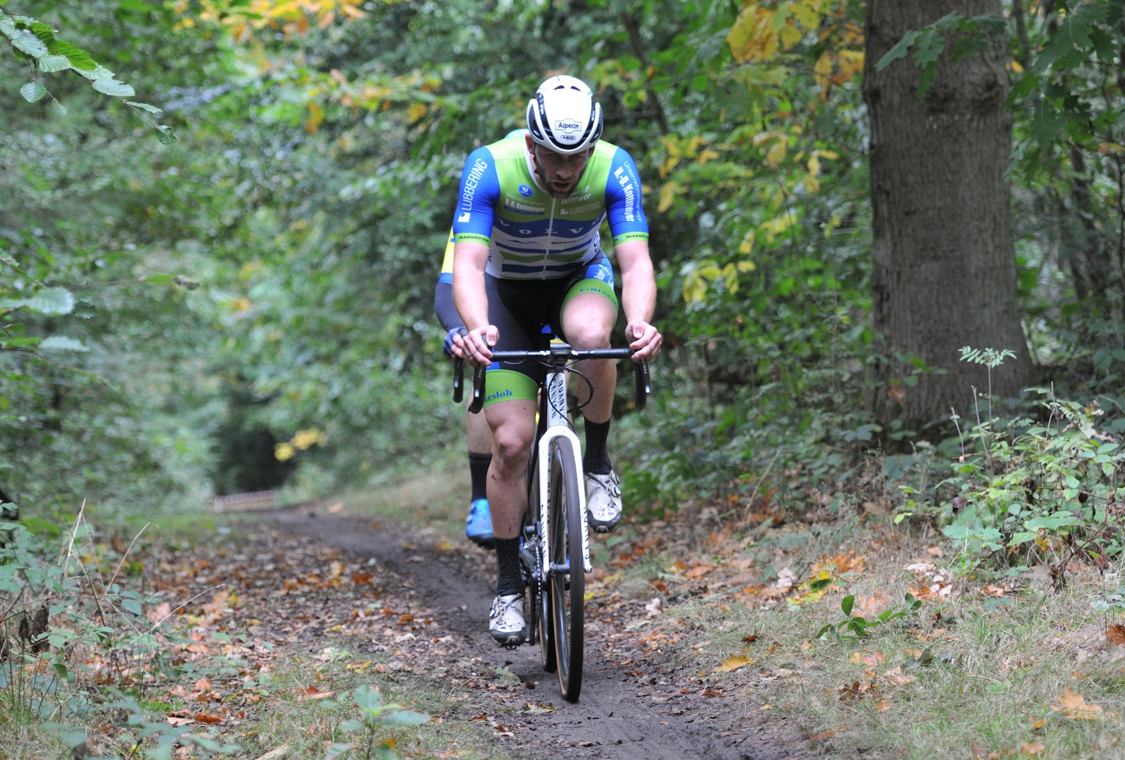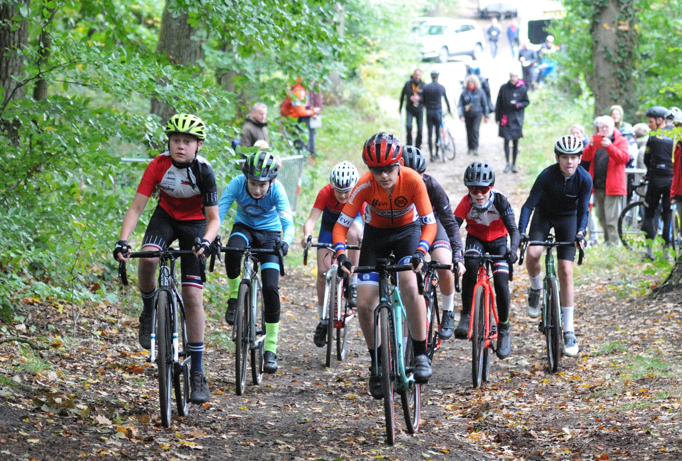 Das erste Crossrennen der RRG in dieser Saison fand wieder im Waldgebiet der Bornheide statt. Hier geht es viel rauf und runter. Man braucht also ordentlich Kraft und auch Steuerkunst. Der Starkregen am Vortag hat dem Waldboden kaum zugesetzt, so dass alle Wege gut fahrbar waren. Glücklicherweise blieb es während der gesamten Veranstaltung regenfrei.
