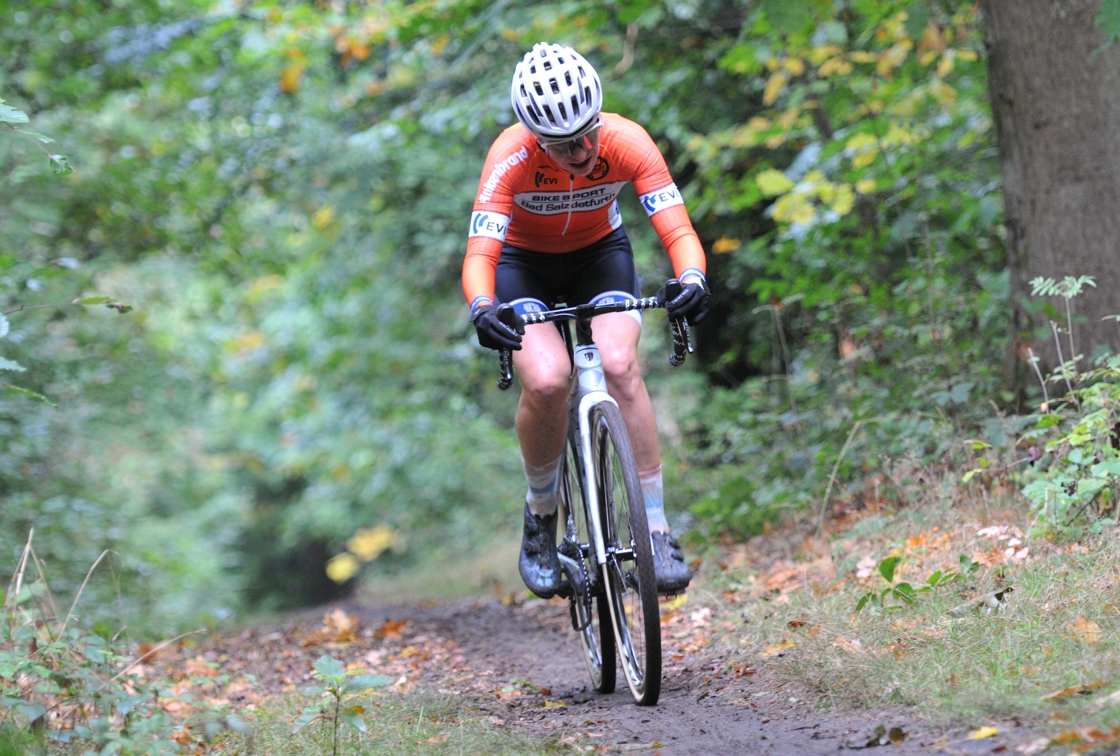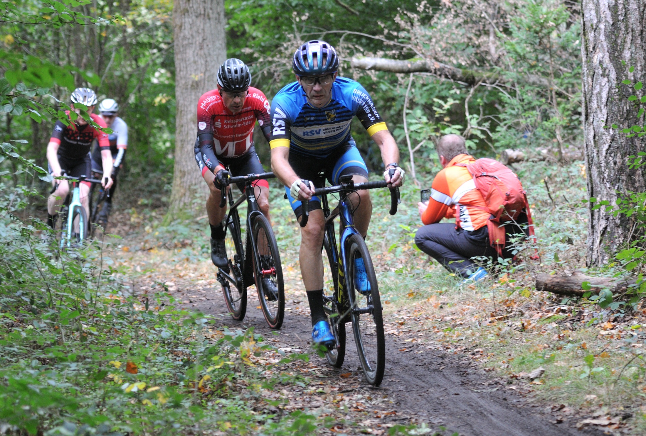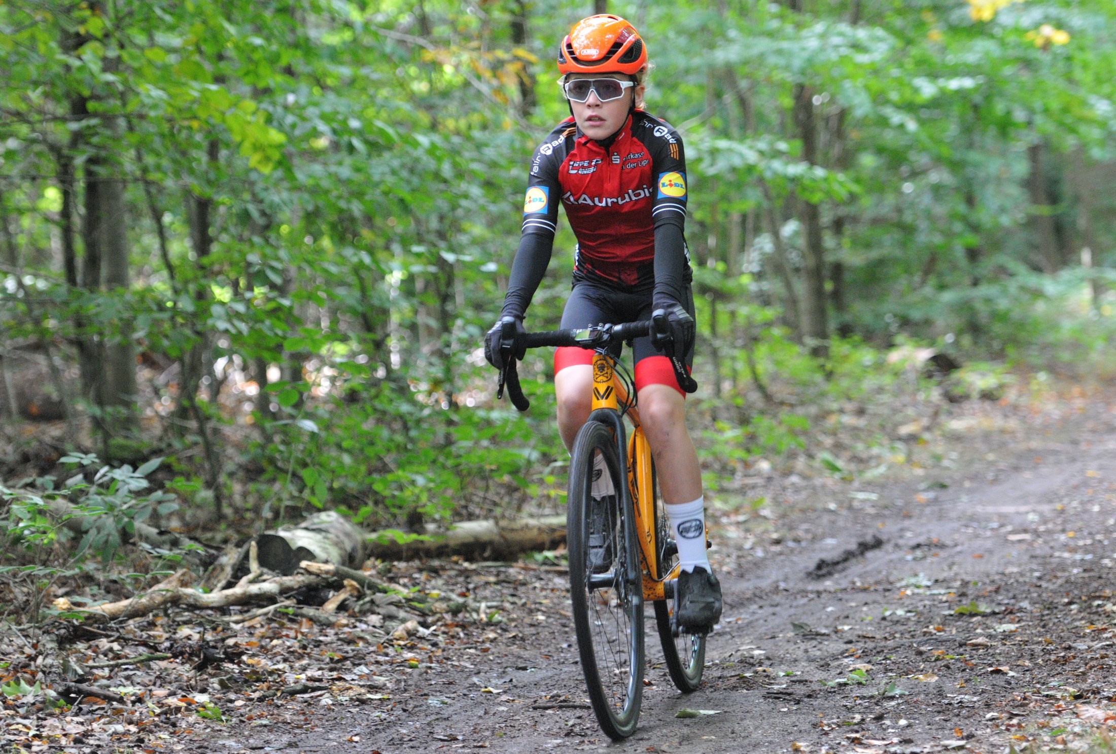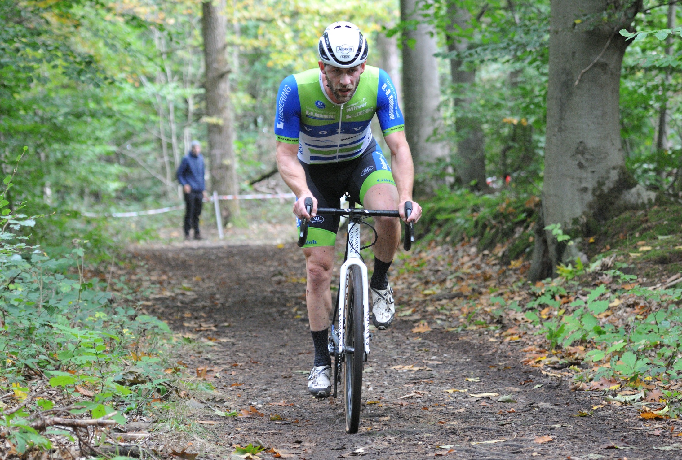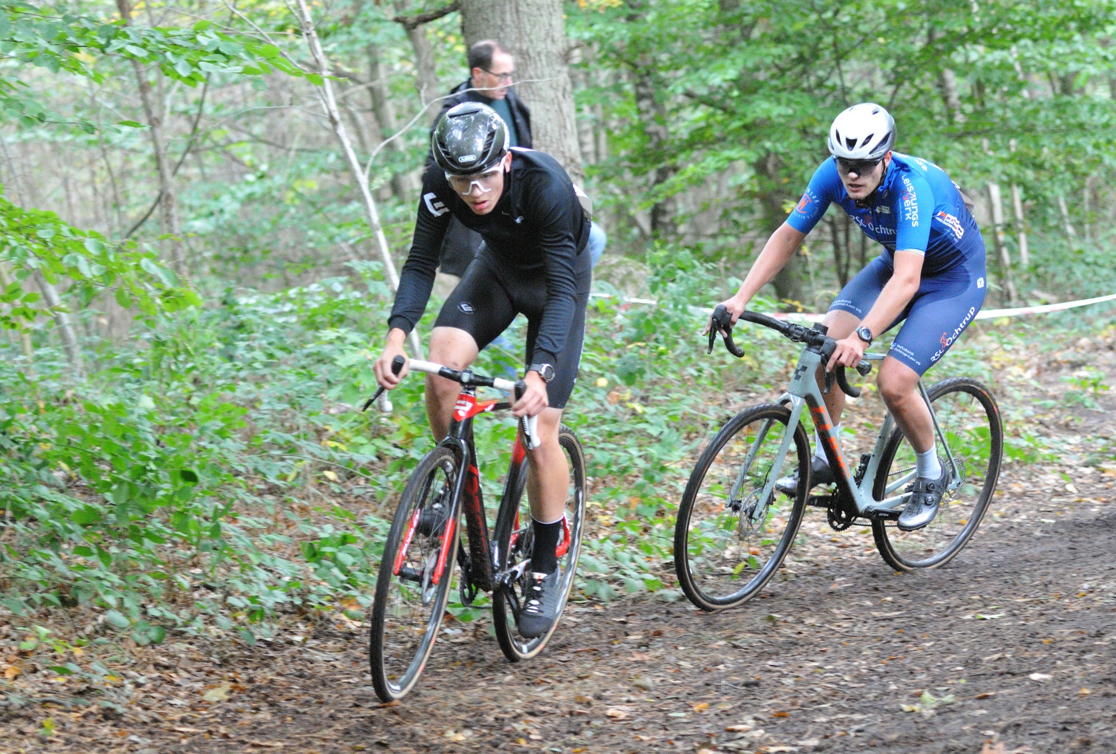 Das erste Crossrennen der RRG in dieser Saison fand wieder im Waldgebiet der Bornheide statt. Hier geht es viel rauf und runter. Man braucht also ordentlich Kraft und auch Steuerkunst. Der Starkregen am Vortag hat dem Waldboden kaum zugesetzt, so dass alle Wege gut fahrbar waren. Glücklicherweise blieb es während der gesamten Veranstaltung regenfrei.