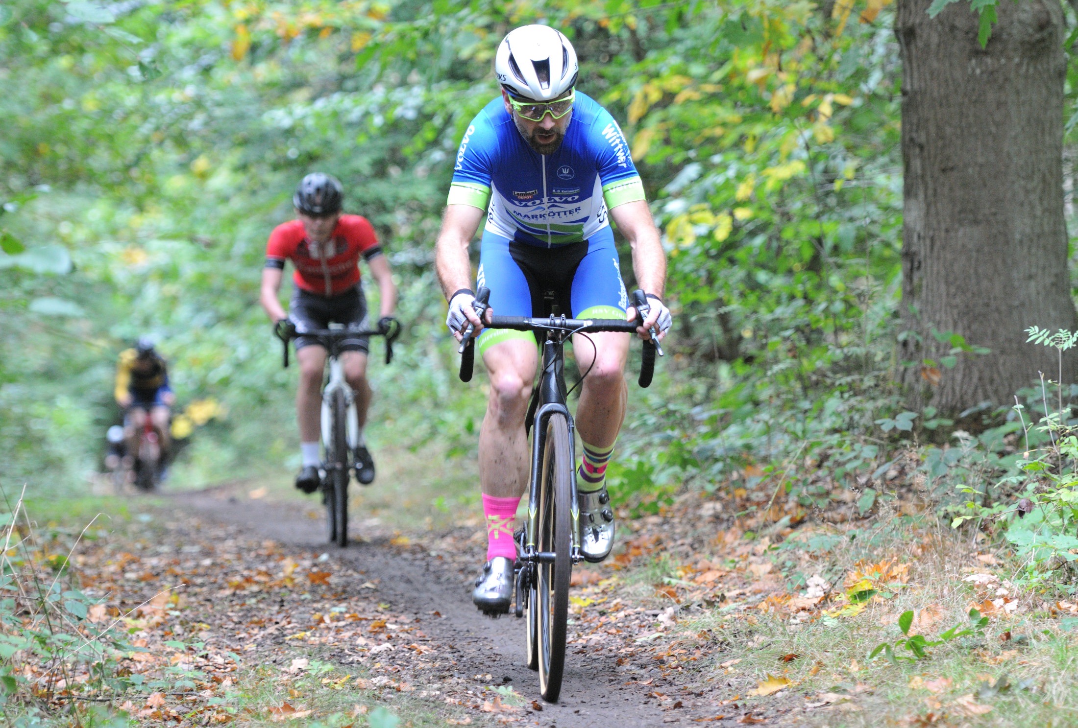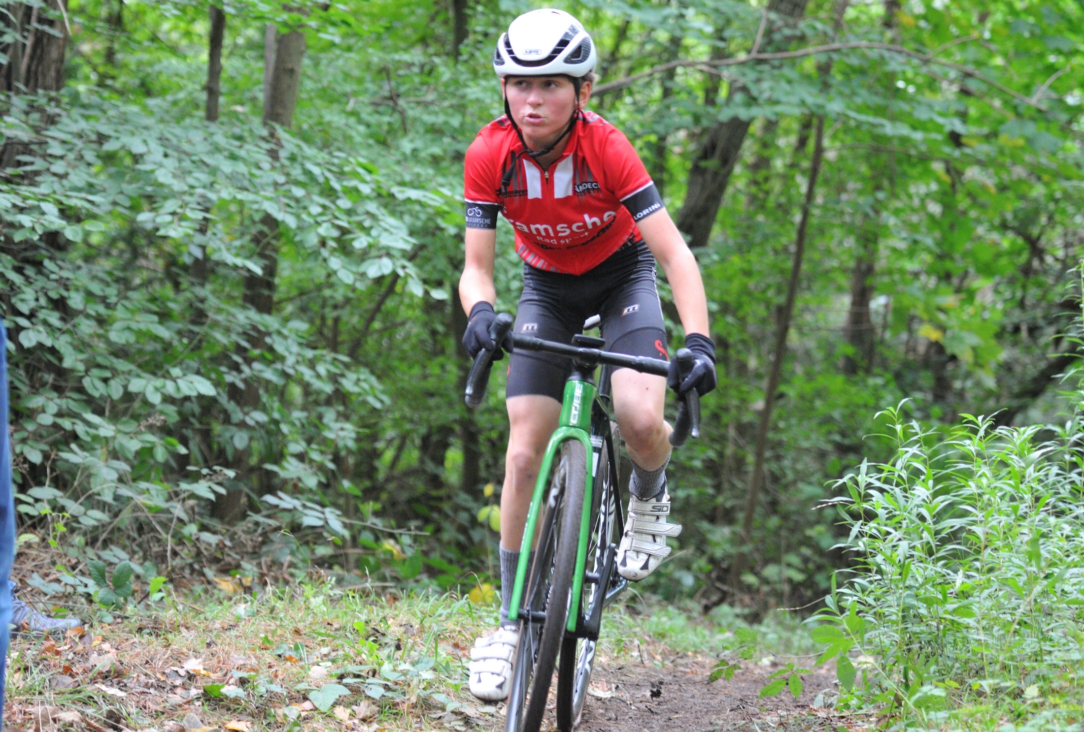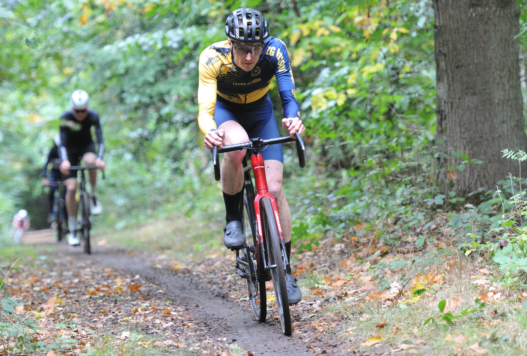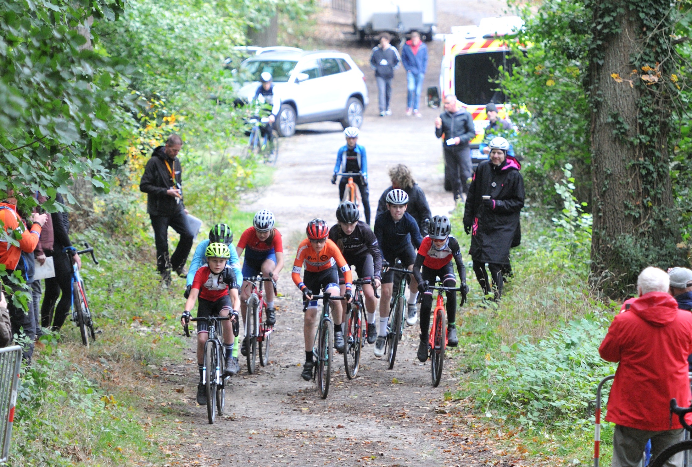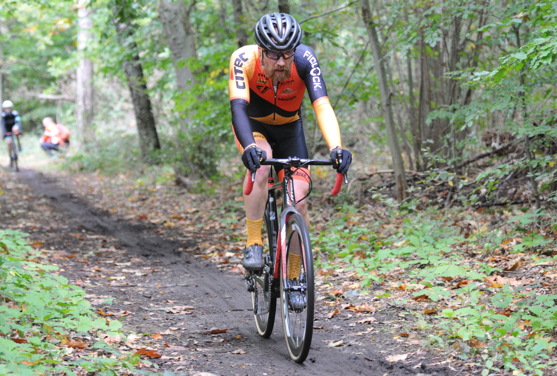 Das erste Crossrennen der RRG in dieser Saison fand wieder im Waldgebiet der Bornheide statt. Hier geht es viel rauf und runter. Man braucht also ordentlich Kraft und auch Steuerkunst. Der Starkregen am Vortag hat dem Waldboden kaum zugesetzt, so dass alle Wege gut fahrbar waren. Glücklicherweise blieb es während der gesamten Veranstaltung regenfrei.