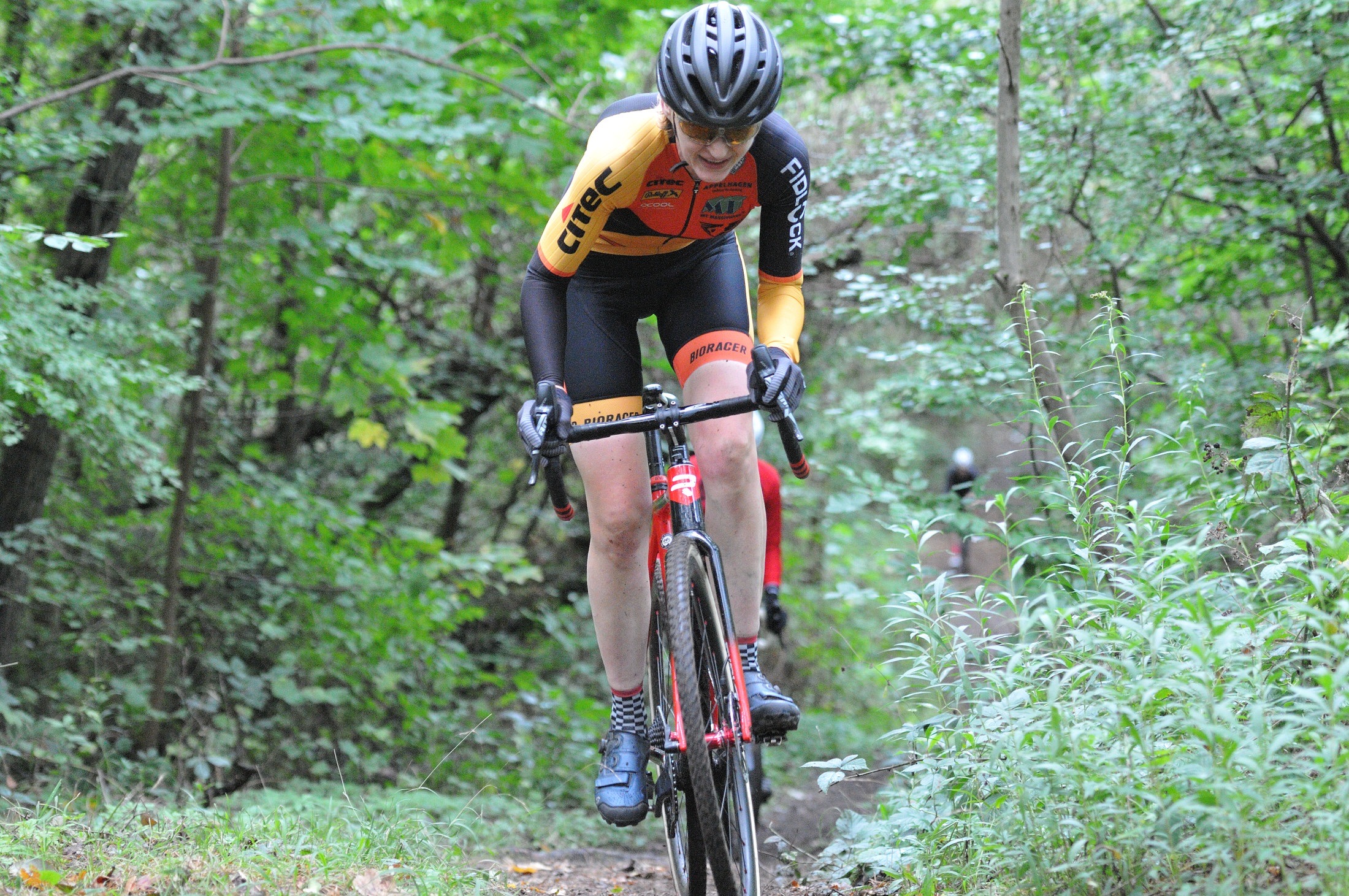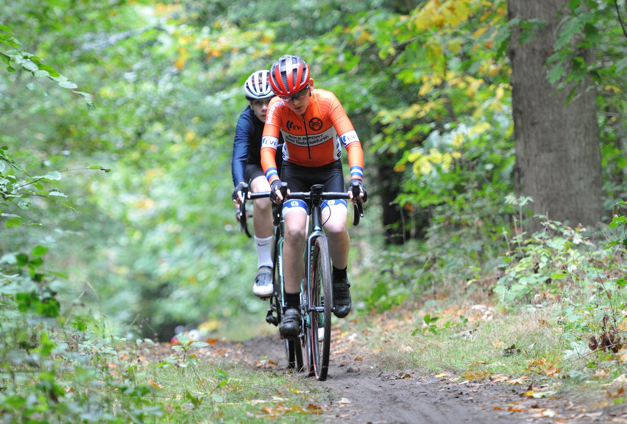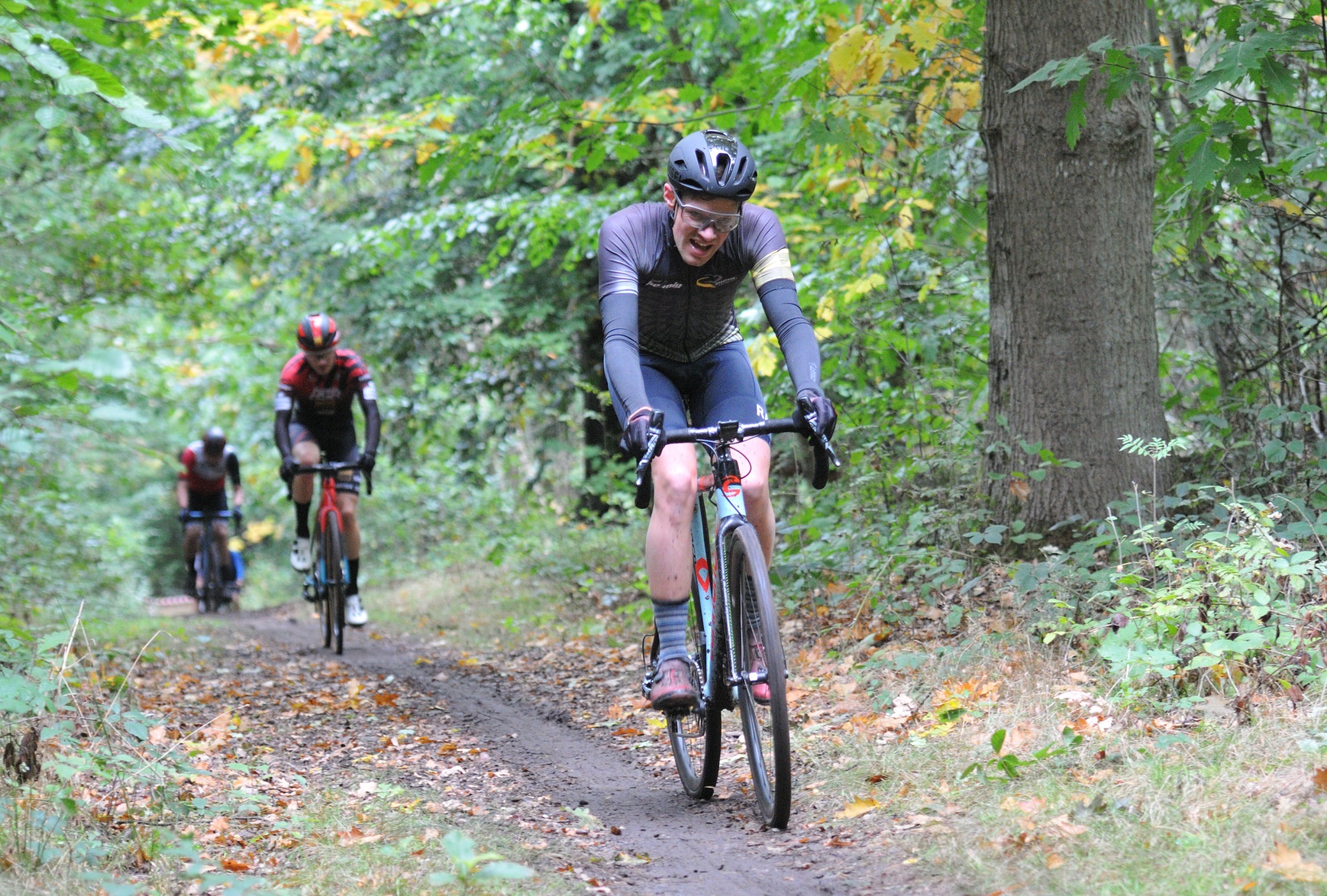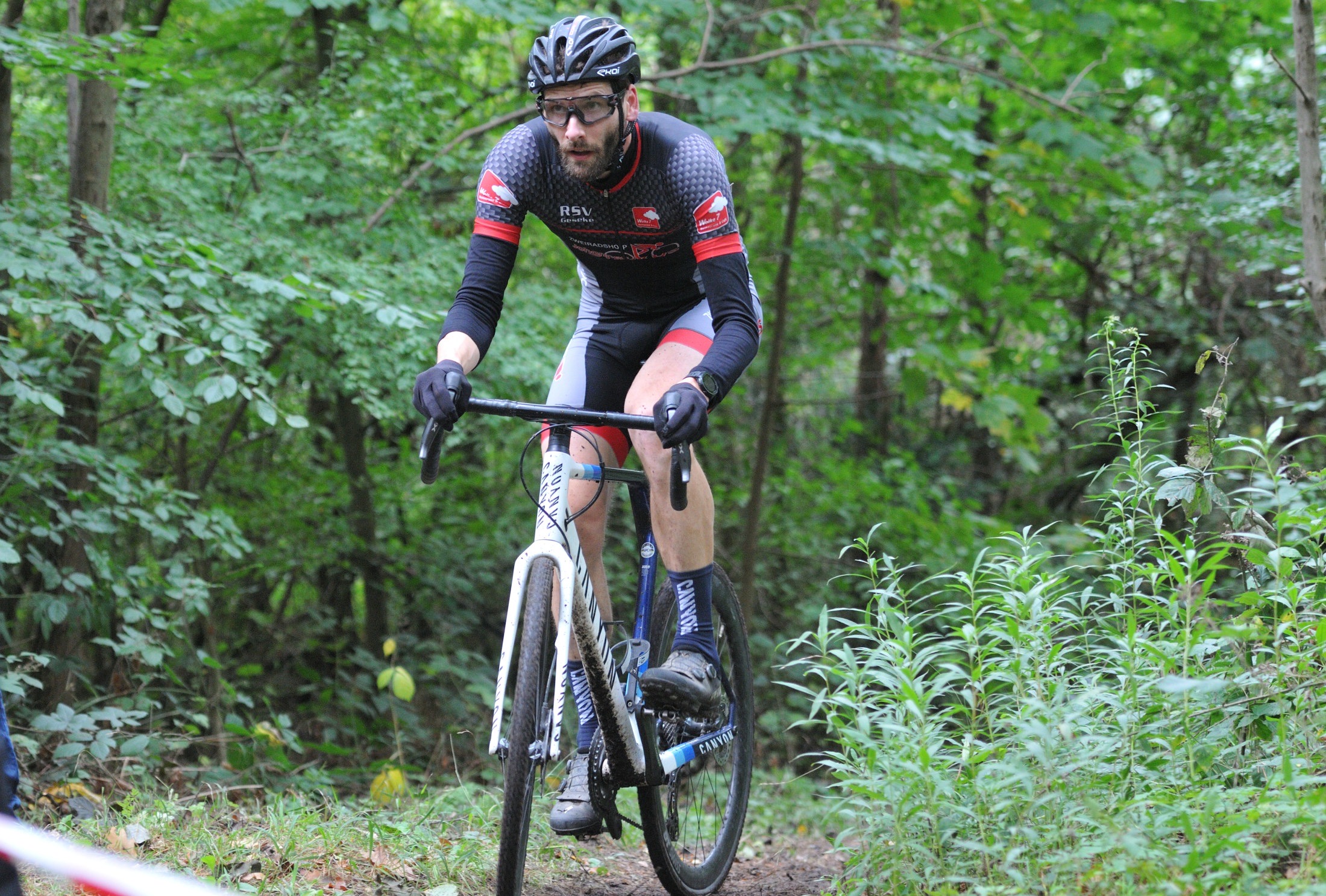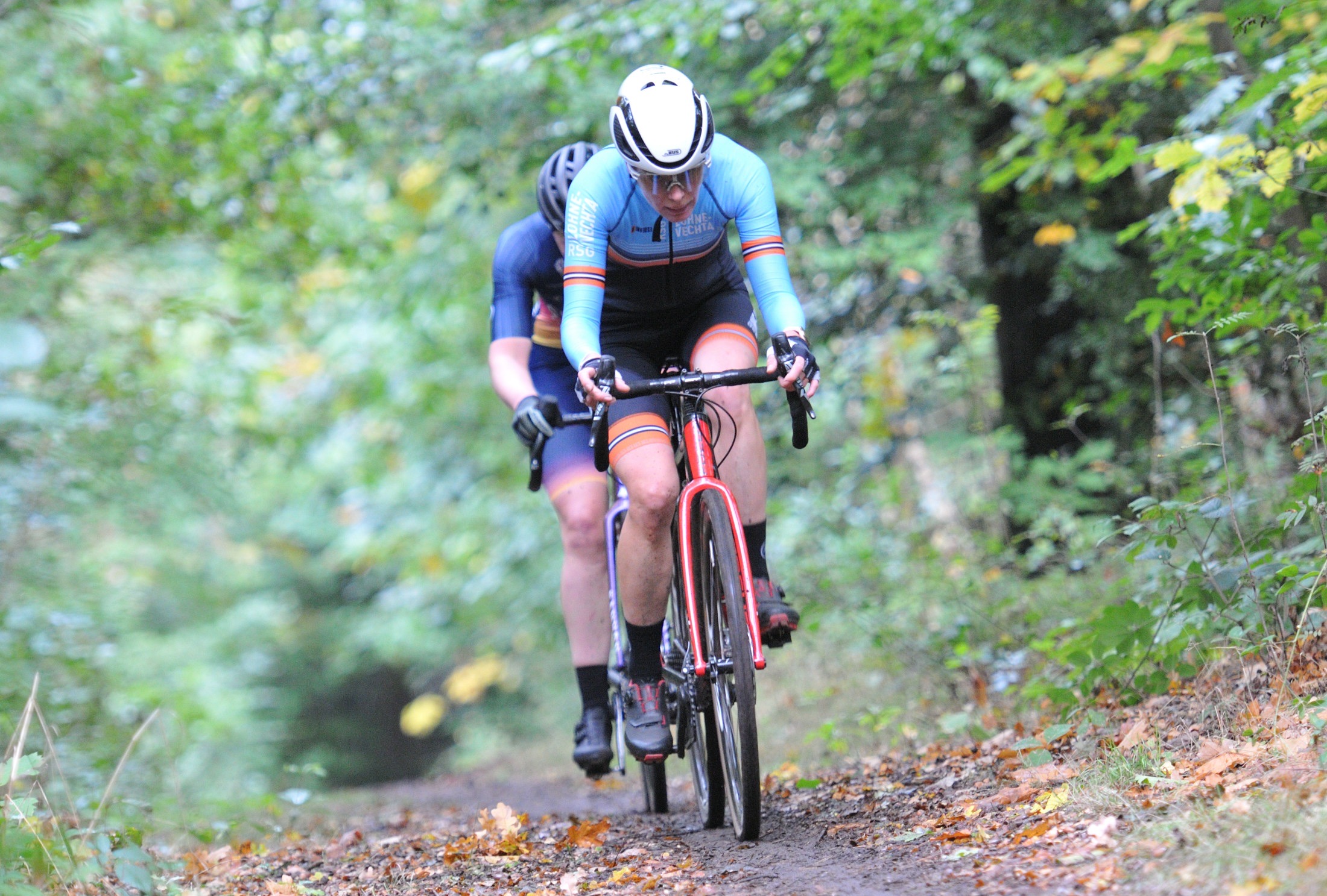 Das erste Crossrennen der RRG in dieser Saison fand wieder im Waldgebiet der Bornheide statt. Hier geht es viel rauf und runter. Man braucht also ordentlich Kraft und auch Steuerkunst. Der Starkregen am Vortag hat dem Waldboden kaum zugesetzt, so dass alle Wege gut fahrbar waren. Glücklicherweise blieb es während der gesamten Veranstaltung regenfrei.