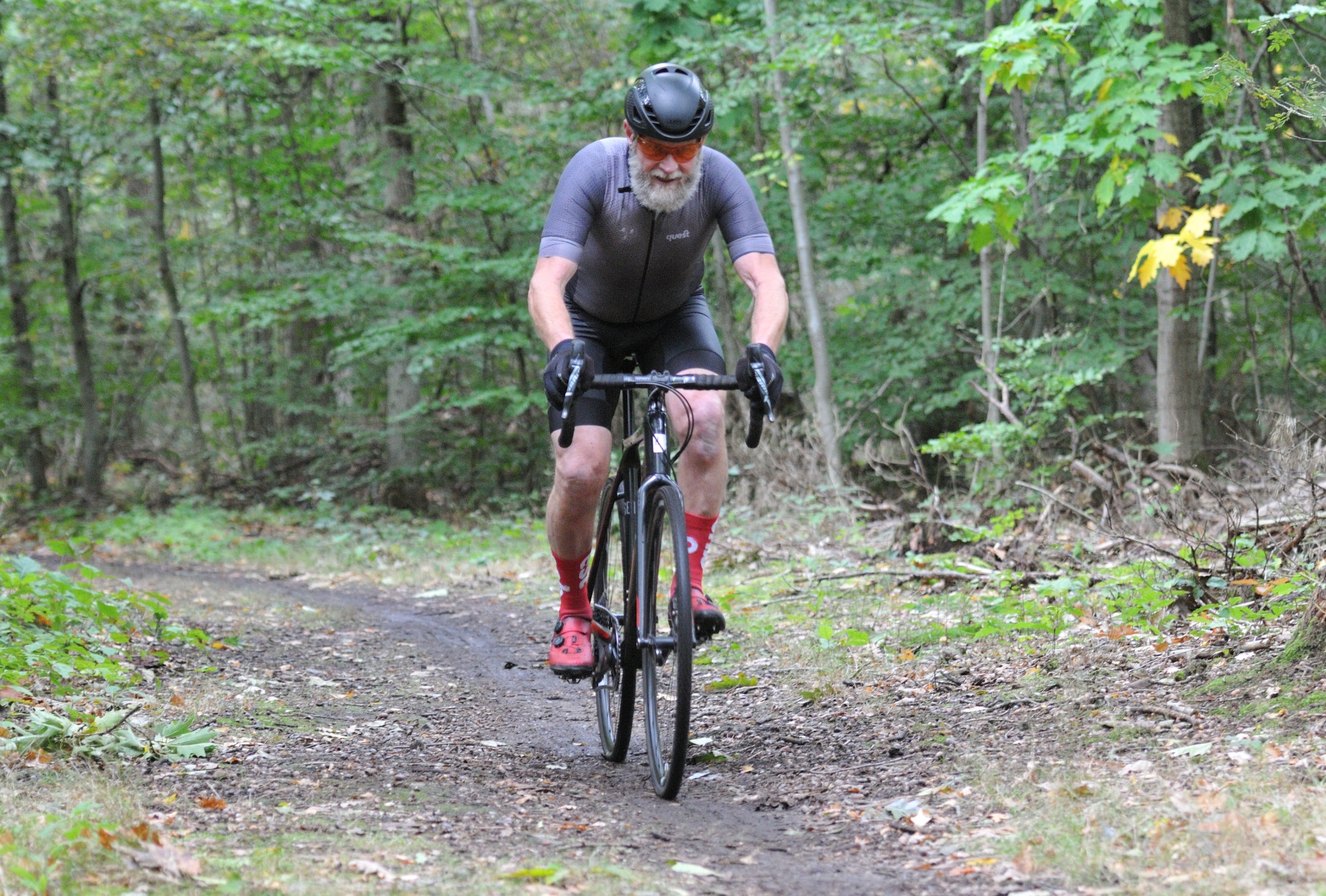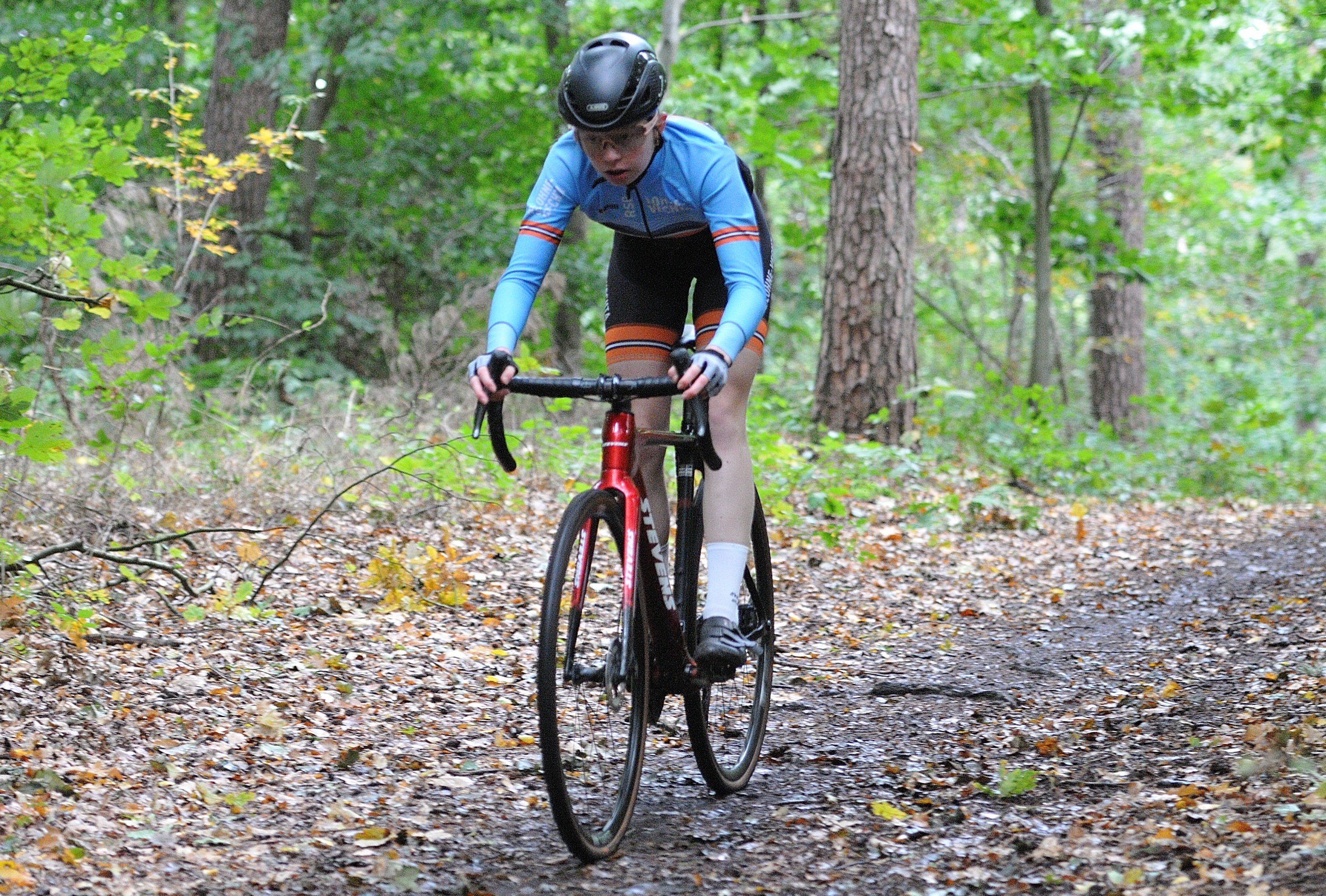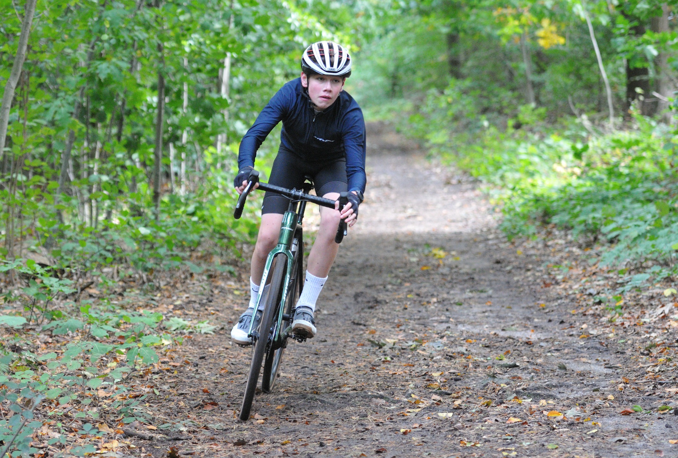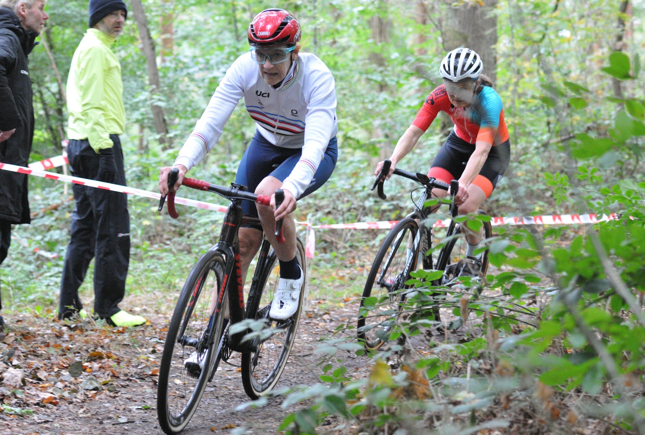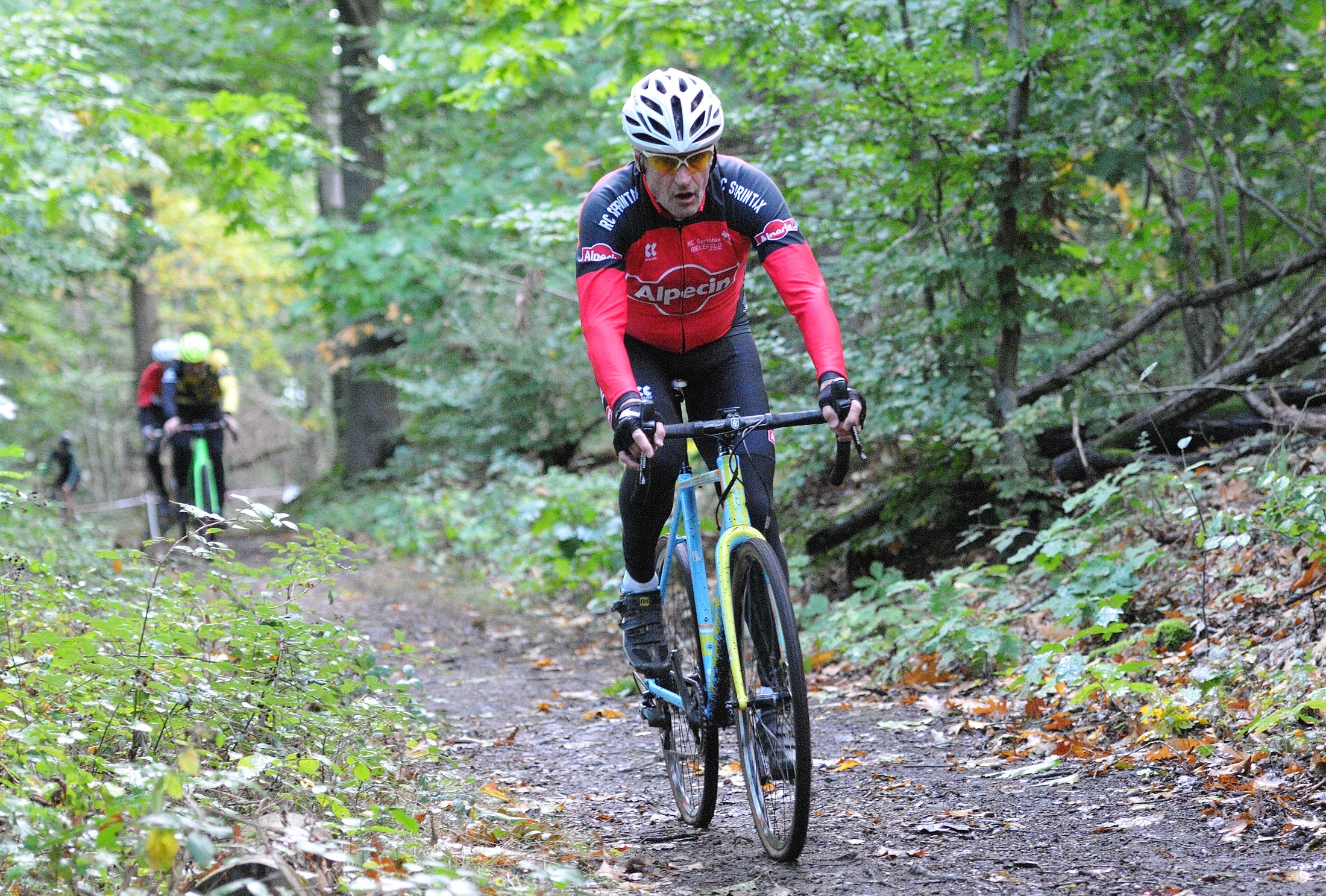 Das erste Crossrennen der RRG in dieser Saison fand wieder im Waldgebiet der Bornheide statt. Hier geht es viel rauf und runter. Man braucht also ordentlich Kraft und auch Steuerkunst. Der Starkregen am Vortag hat dem Waldboden kaum zugesetzt, so dass alle Wege gut fahrbar waren. Glücklicherweise blieb es während der gesamten Veranstaltung regenfrei.