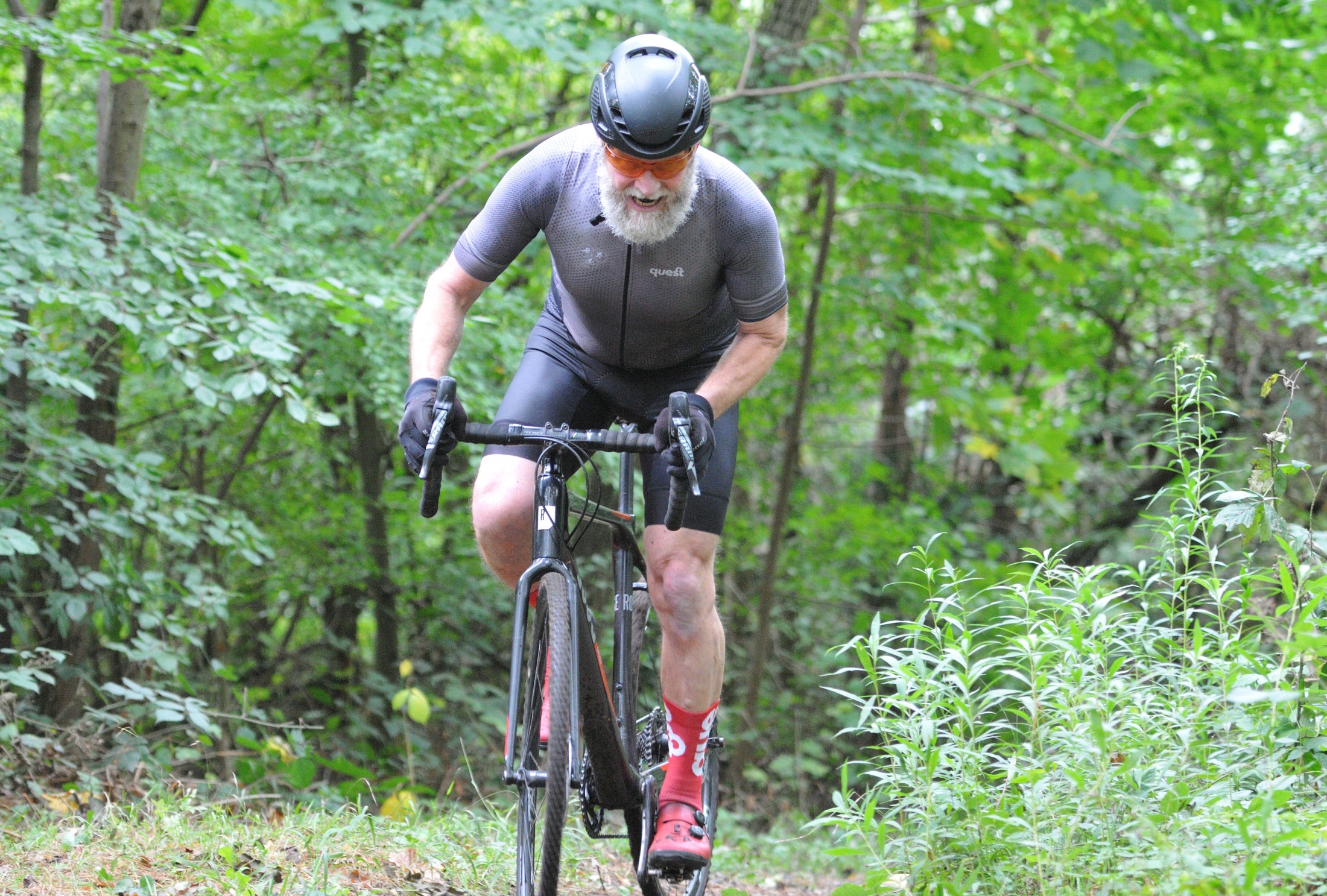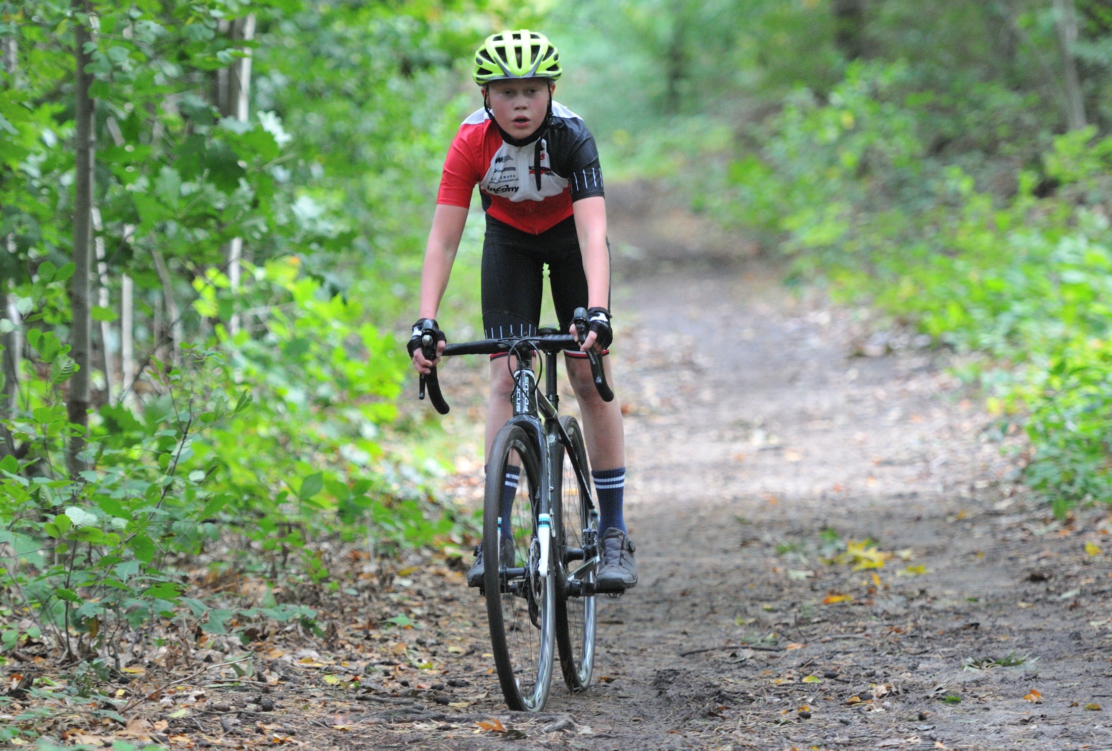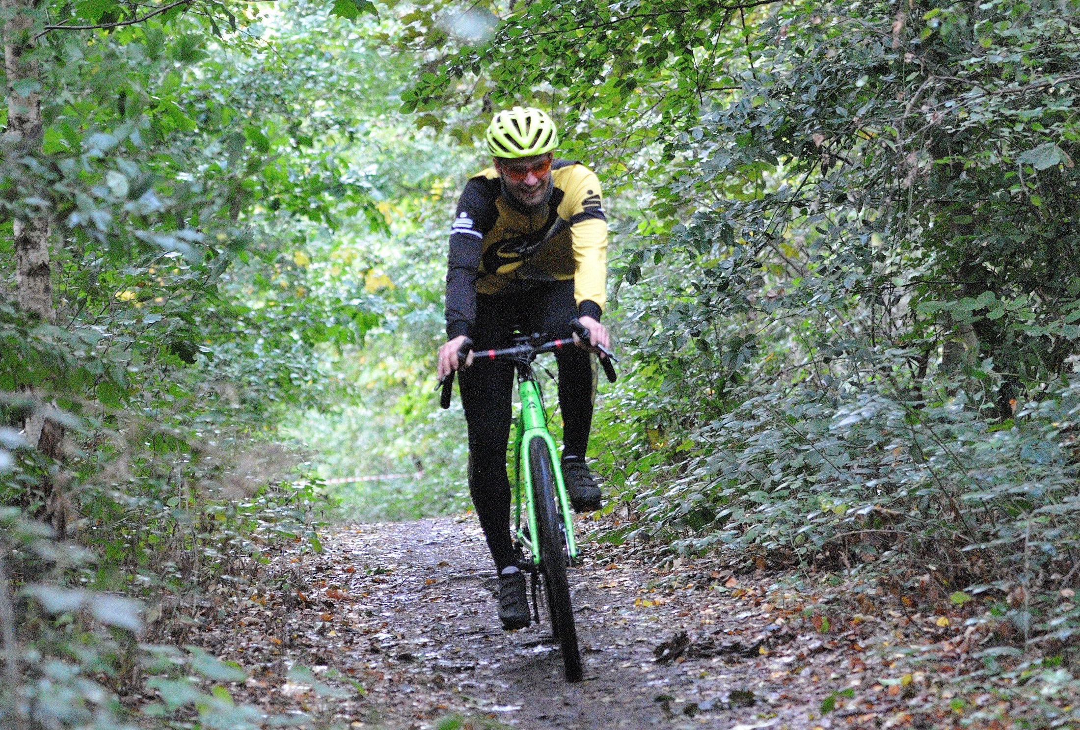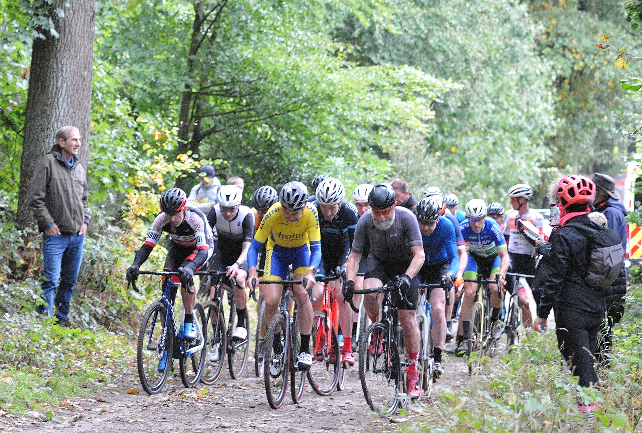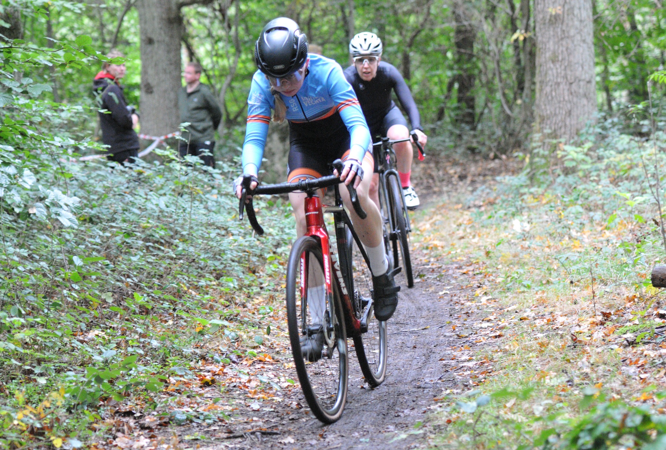 Das erste Crossrennen der RRG in dieser Saison fand wieder im Waldgebiet der Bornheide statt. Hier geht es viel rauf und runter. Man braucht also ordentlich Kraft und auch Steuerkunst. Der Starkregen am Vortag hat dem Waldboden kaum zugesetzt, so dass alle Wege gut fahrbar waren. Glücklicherweise blieb es während der gesamten Veranstaltung regenfrei.
